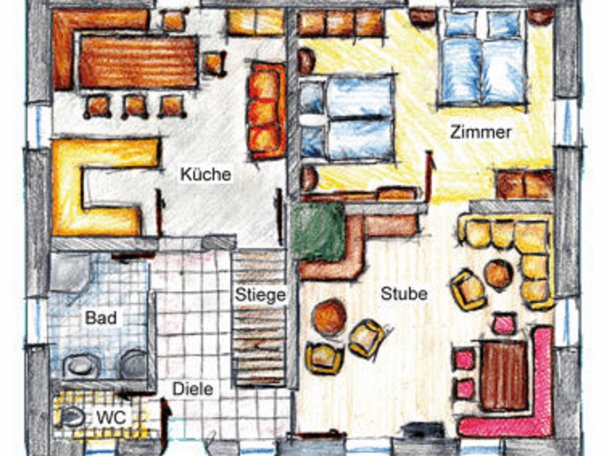 Ferienhaus mit 160m² und 5 Schlafzimmern, 2 Badezimmern, Bauernstube mit Kachelofen und große Küche. Sat-TV, Radio, Geschirrspühler, Waschmaschine und Balkon,Wasserkocher. Im Erdgeschoß befindet sich ein großes 4-Bettzimmer, große Stube mit Kachelofen und 2 Tischen.