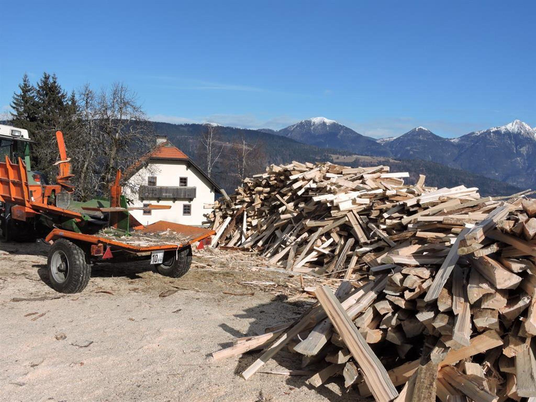 Im Keller ist genügend Holz für die wollige Wärme des Kachelofens und dem Holzherd.