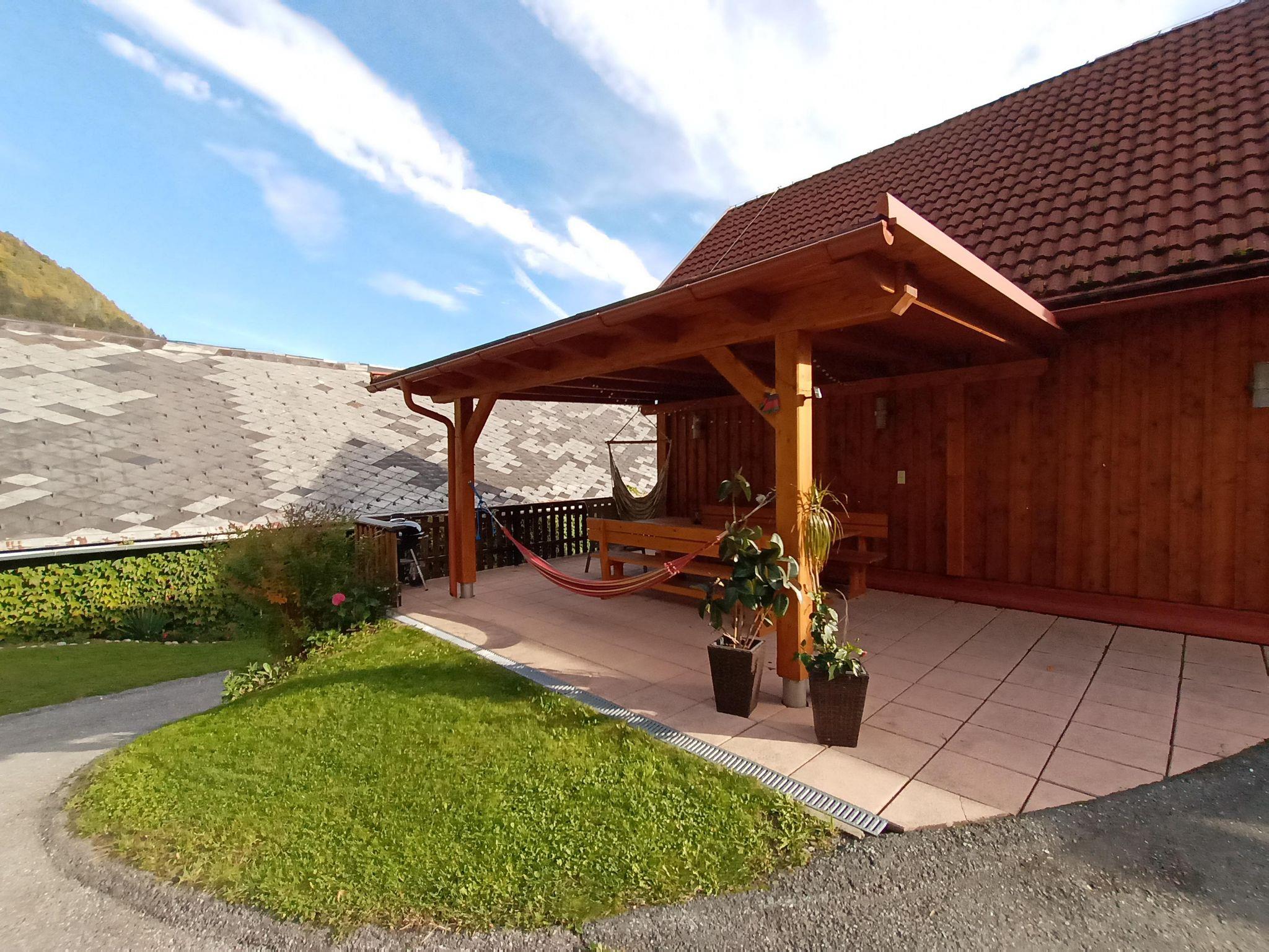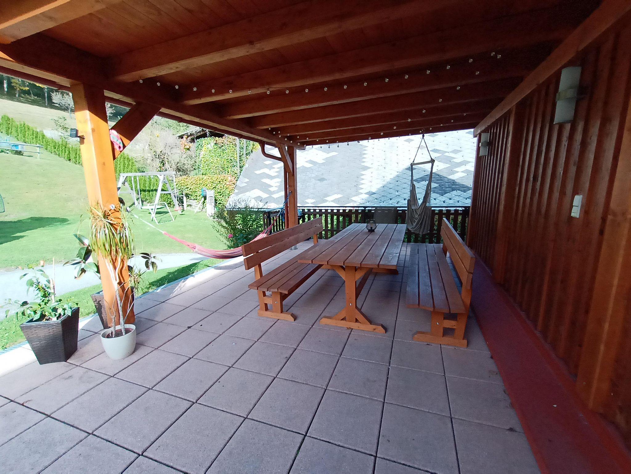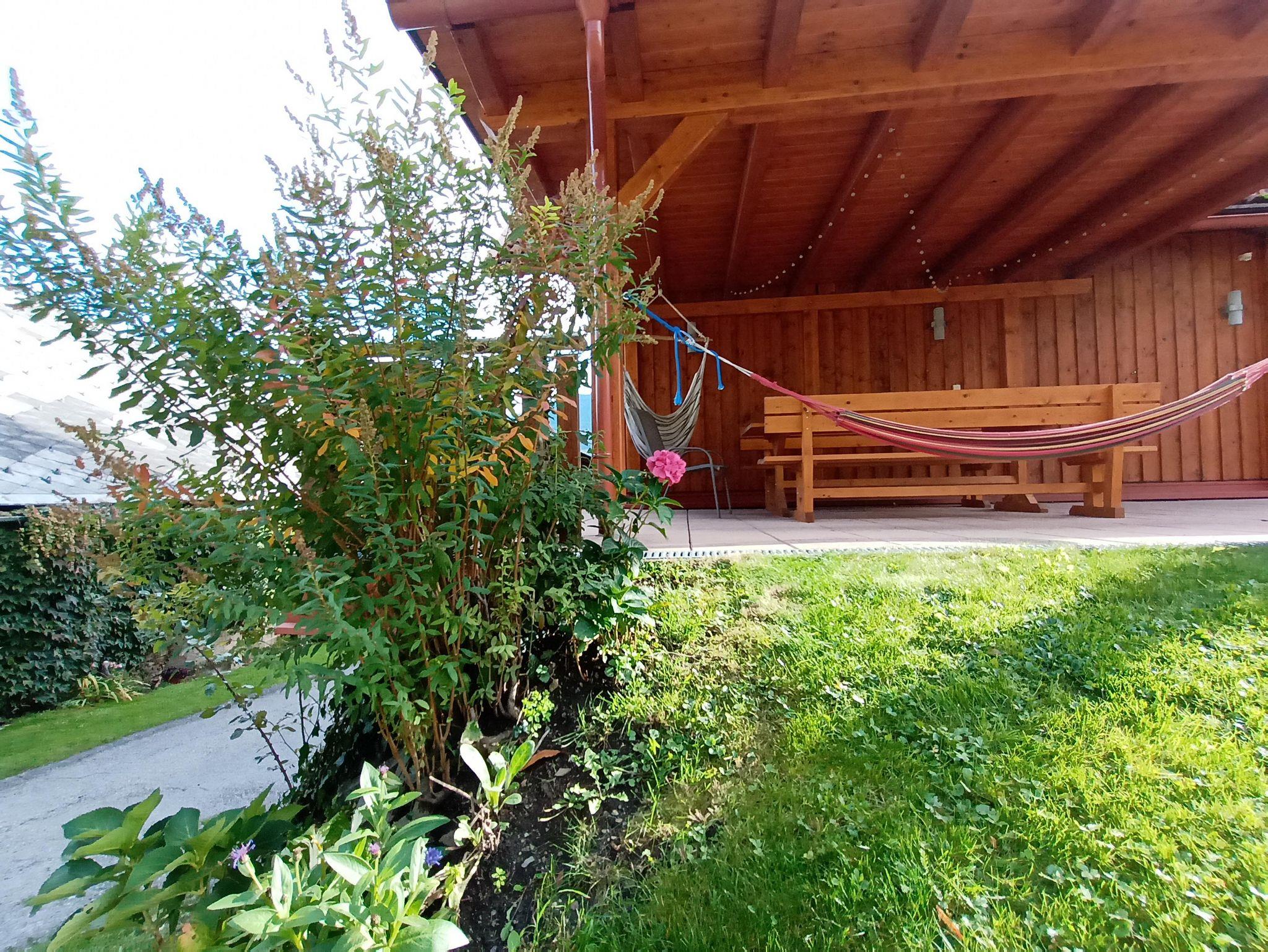 Die überdachte Sonnenterasse lädt zum Entspannen ein, hier können Sie auch gerne den Griller benutzen.Für die Kinder gibt es eine Schaukel und genügend Platz um sich auszutoben.