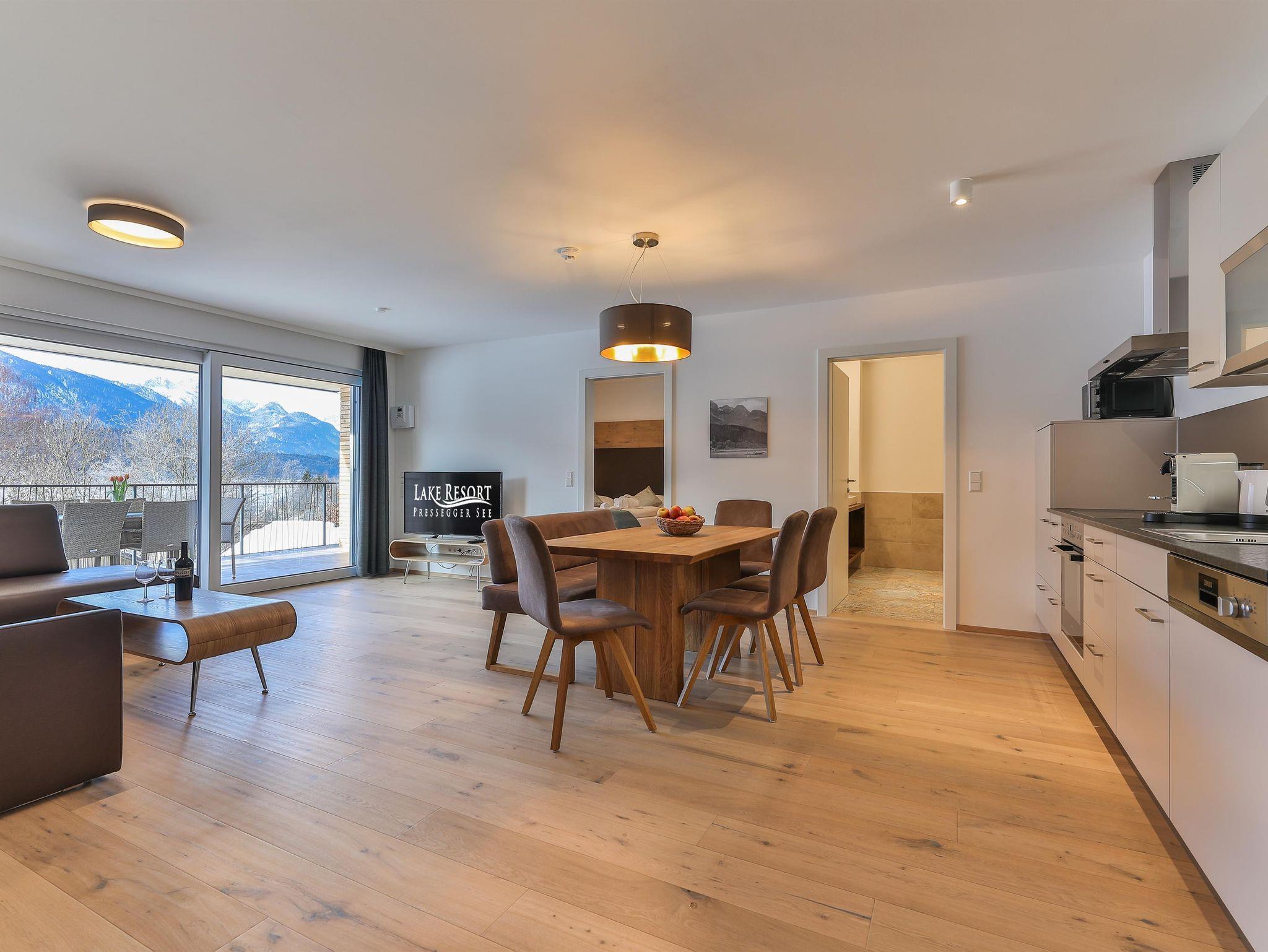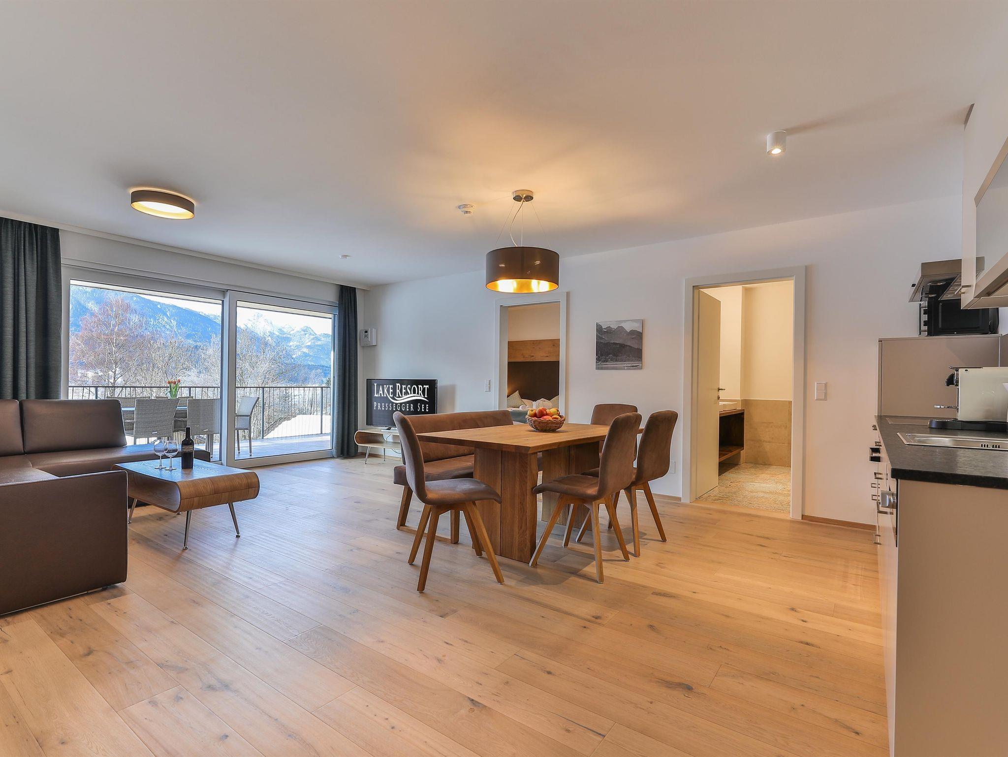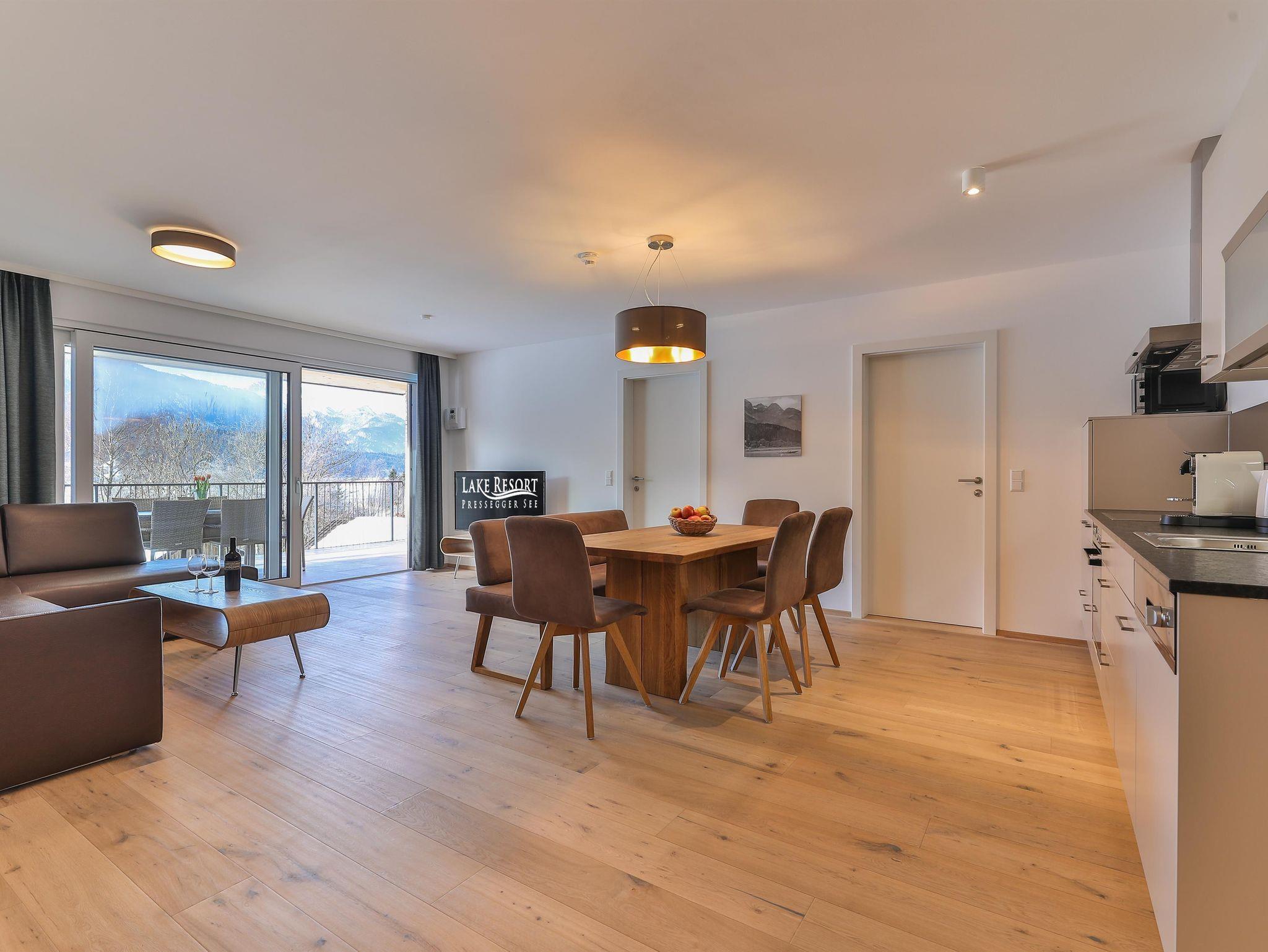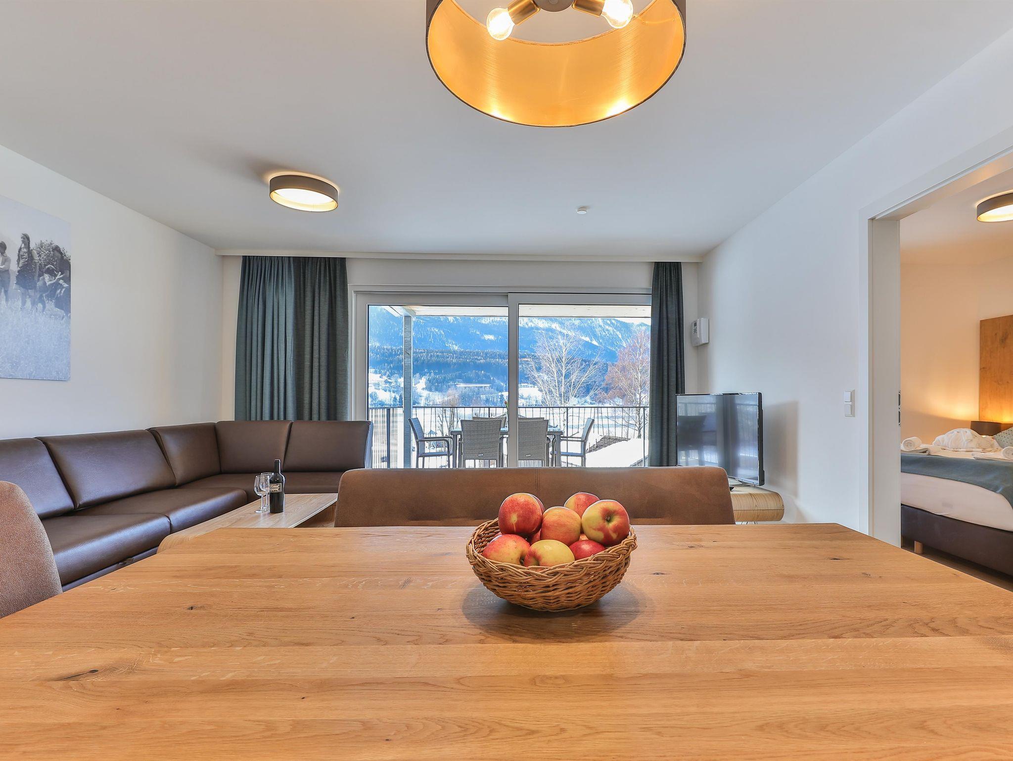 Die modernen Premium Apartments im neu errichteten Hauptgebäude erfüllen alle Wünsche. Von der Tiefgarage bis zur privaten Panoramasauna inklusive herrlichem Ausblick über das gesamte Resort und den Pressegger See.