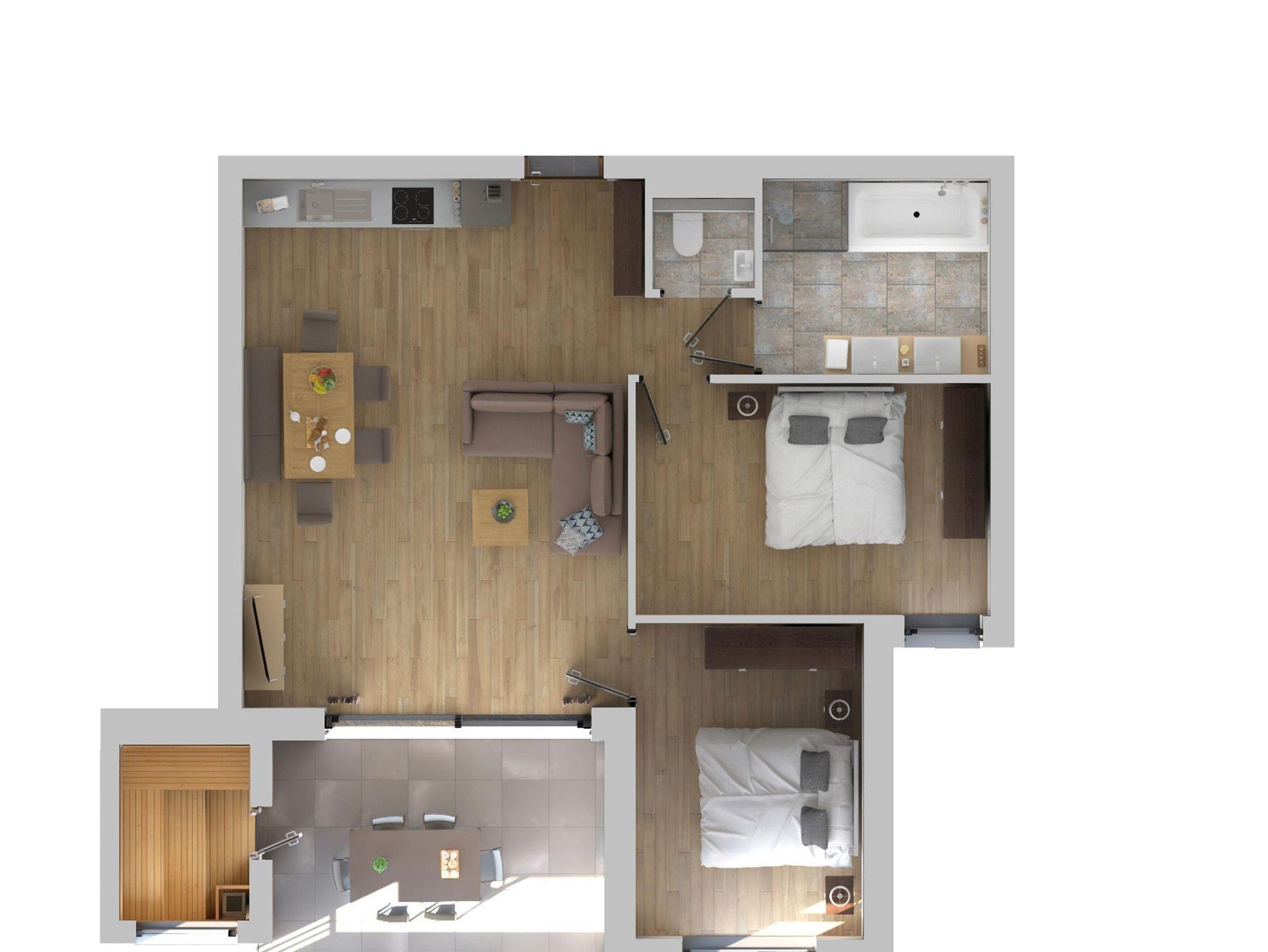 • Luxusausstattung mit 2 getrennten Schlafzimmern