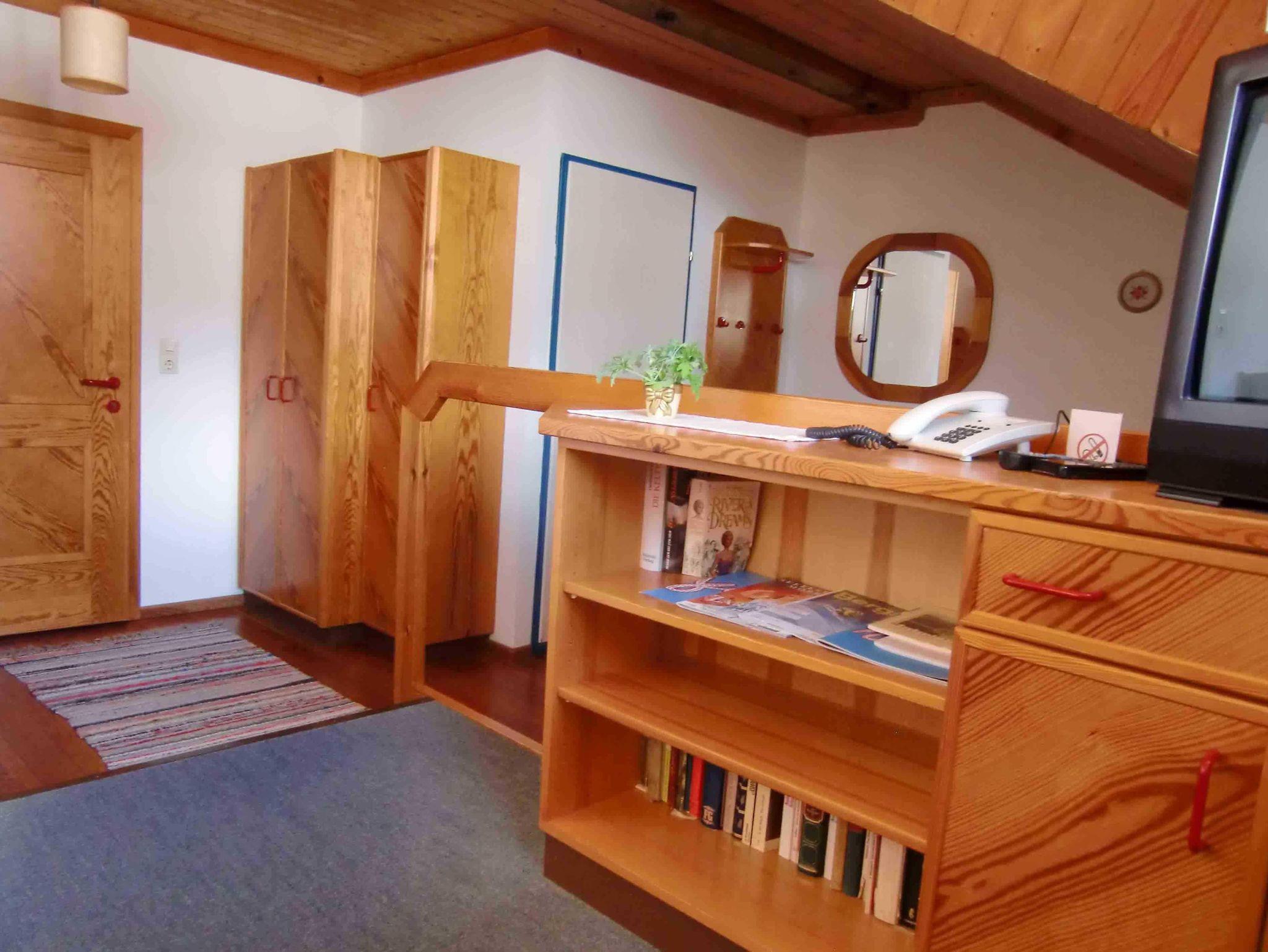 Komfort-Doppelzimmer mit 30m² für 2 Personen, mit gemütlicher Wohnecke, Dusche und WC. Sat-TV/Radio, Wireless Lan, abgetrennt vom Raum: Kühlschrank, kleine Kochgelegenheit, Kaffeemaschine, Geschirr. sämtliche Wäsche komplett! Keine tägliche Zimmerreinigung.
