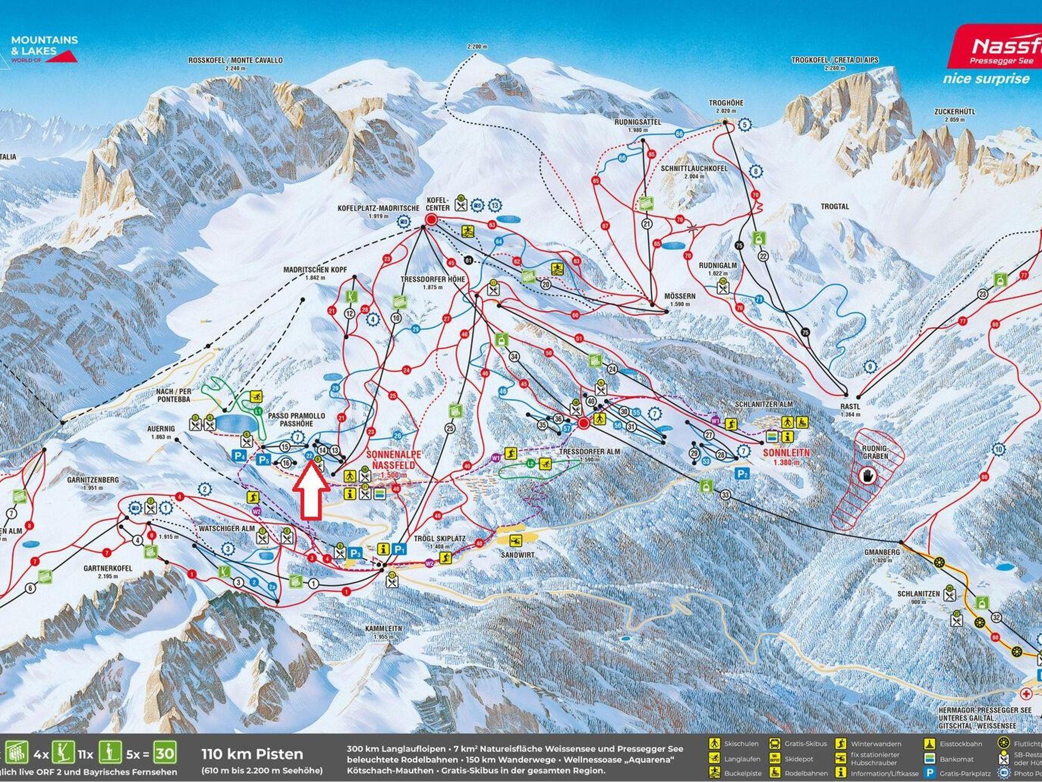 Geniessen Sie Ihren Aufenthalt in einem stilvoll eingerichteten und vor kurzem fertiggestellten Appartement (inkl. 1 Tiefgaragen - Stellplatz) auf der Sonnenalpe, direkt an der Piste (Ski in / Ski out). Der direkte Zugang zu einem versperrten Skistall mit Ski-schuhheizung rundet im Winter das Skivergnügen perfekt ab. Das Appartement liegt in den Bergen nahe der italienischen Grenze, die Madritschenbahn (6-er Bahn) und damit der Zugang zu Kärntens größtem und schneesichersten Skigebiet liegt direkt vor der Haustüre. Ebenso bietet das Appartement einen direkten Einstieg in die Langlauf-Loipe. Im Umfeld befindet sich ein Supermarkt sowie einige Skihütten. Einige Restaurants sind fußläufig erreichbar, darunter auch eine Pizzeria gleich über der Grenze.