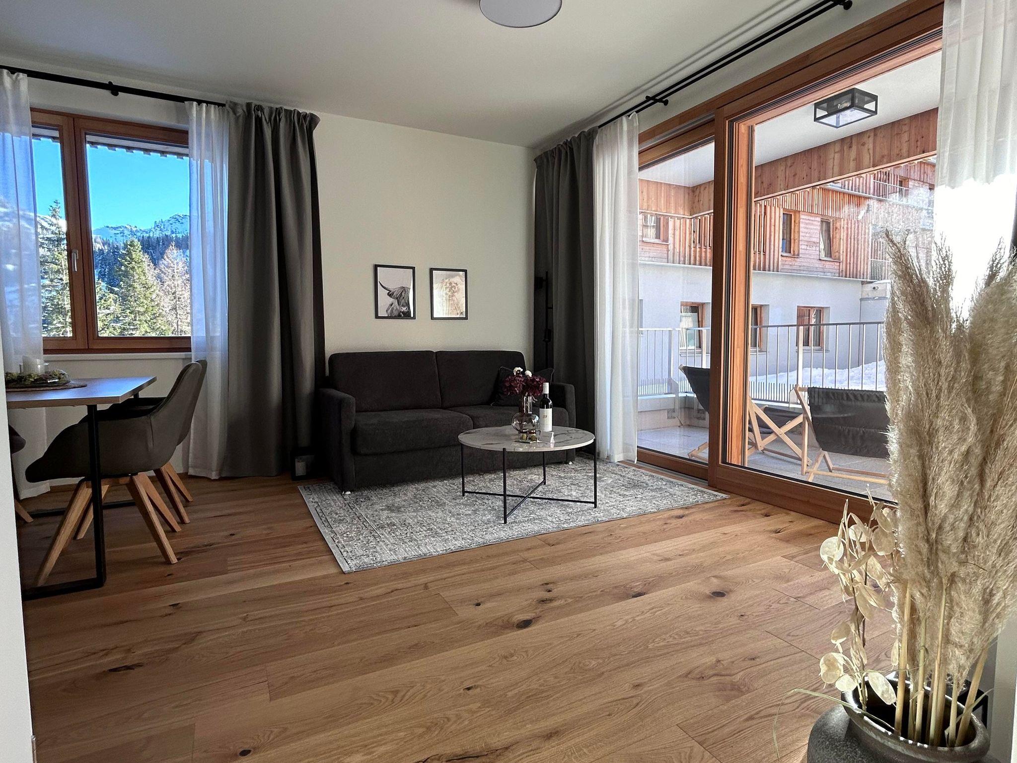 Die Ferienwohnung punktet nicht nur durch Ihre einzigartige Lage sondern auch durch ihre modern-alpine Gemütlichkeit. In diesem Appartement können sich bis zu 4 Personen vom stressigen Alltag erholen. Genissen Sie die private Sauna und den Blick in die Berge. In der, mit modernen Geräten ausgestatteten Küche, können Sie sich kleine oder große Mahlzeiten problemlos zubereiten. Vom Cerankochfeld bis zur Spülmaschine ist alles vorhanden. Das Almappartement Nassfeld verfügt auf 56m² über 1 Schlafzimmer, 1 Wohnküche mit großem Schlafsofa, 1 Badezimmer, 1 WC sowie eine Terrasse. Das Nassfeld eignet sich perfekt für alle die in ihrem Urlaub gerne aktiv sind - Sowohl im Winter als auch im Sommer können verschiedene Aktivitäten vom Appartement aus direkt in Angriff genommen werden.