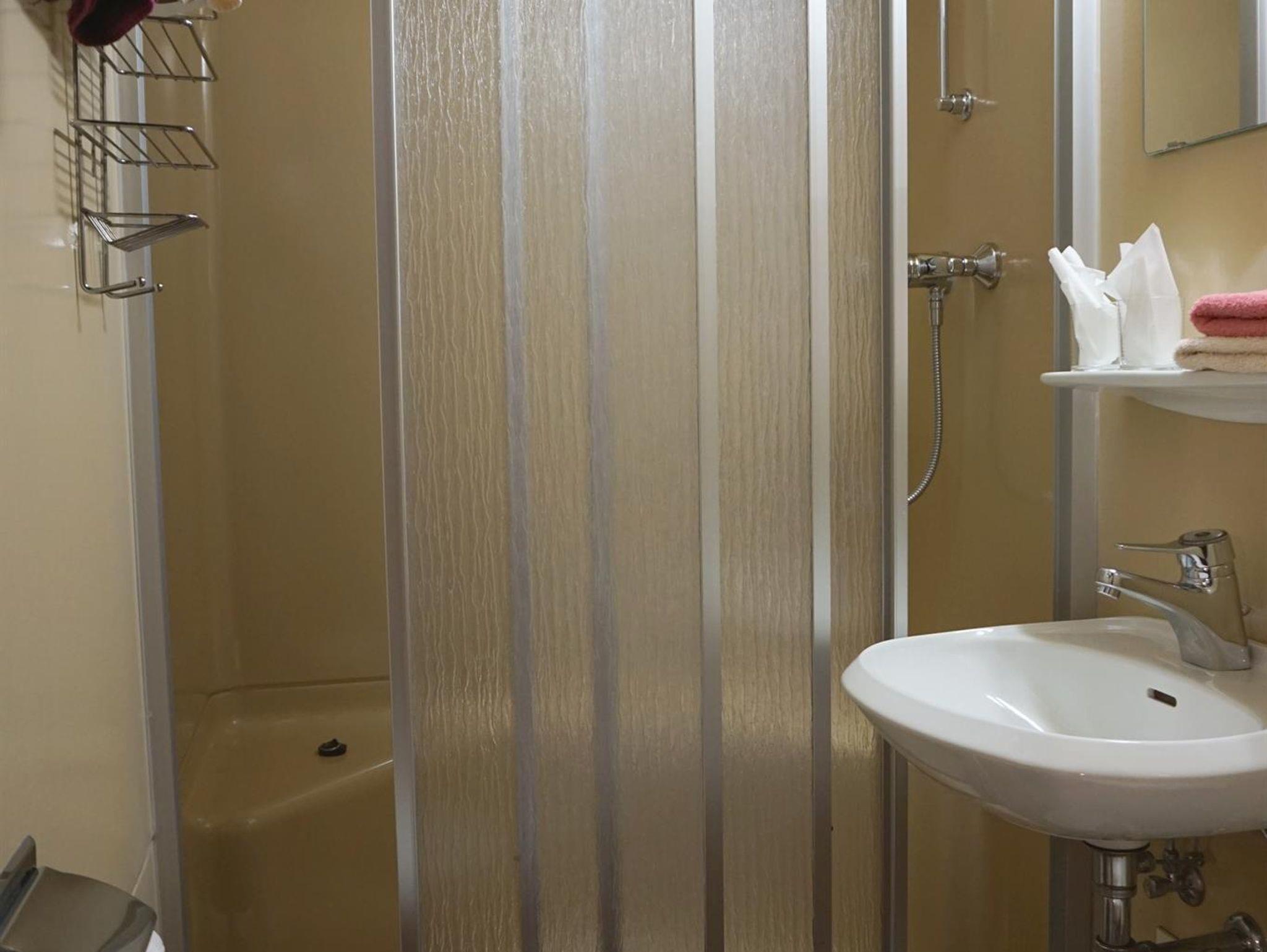 Doppelzimmer mit TV, DU/WC. Im 1. Stock des Haupthauses. Zugang zur Terrasse über den Gang.