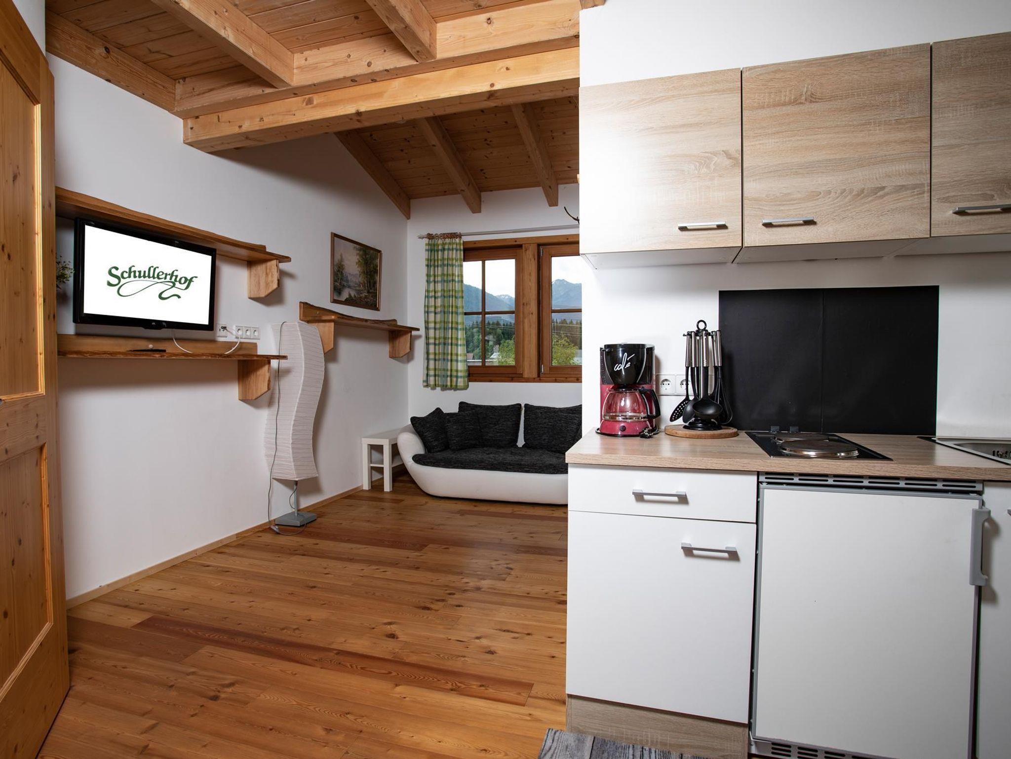 Apartment Kirchblick hat ca. 35m² und besteht aus einem Schlafzimmer mit Doppelbett, einer Wohnküche mit TV, Dusche/WC.
