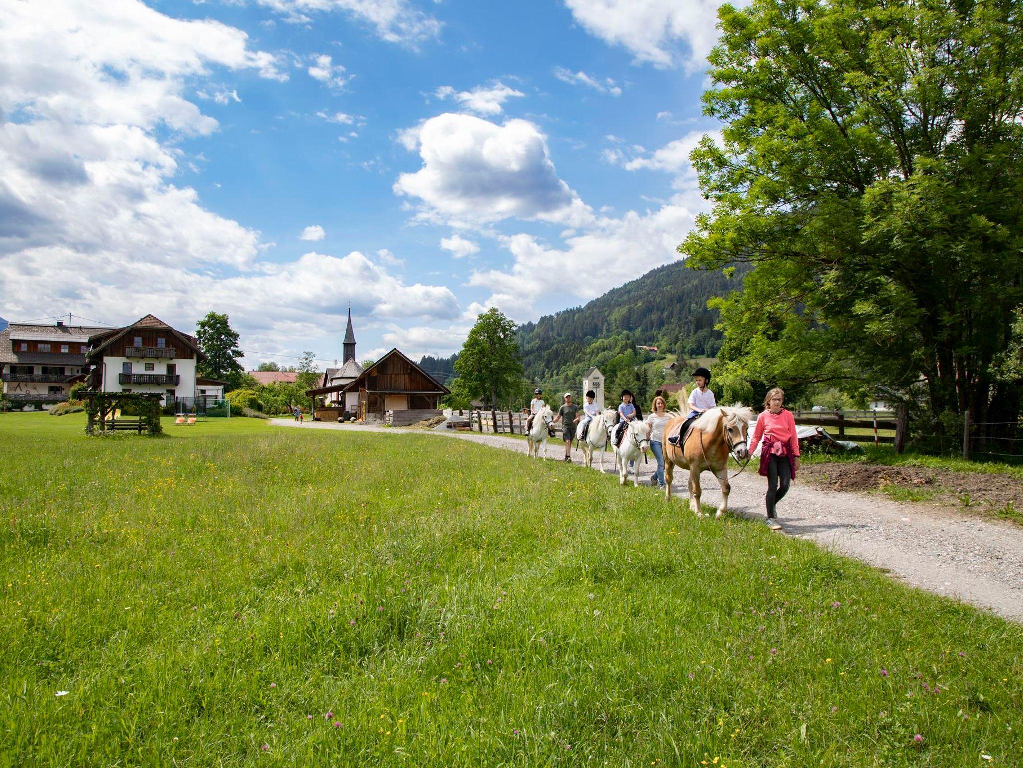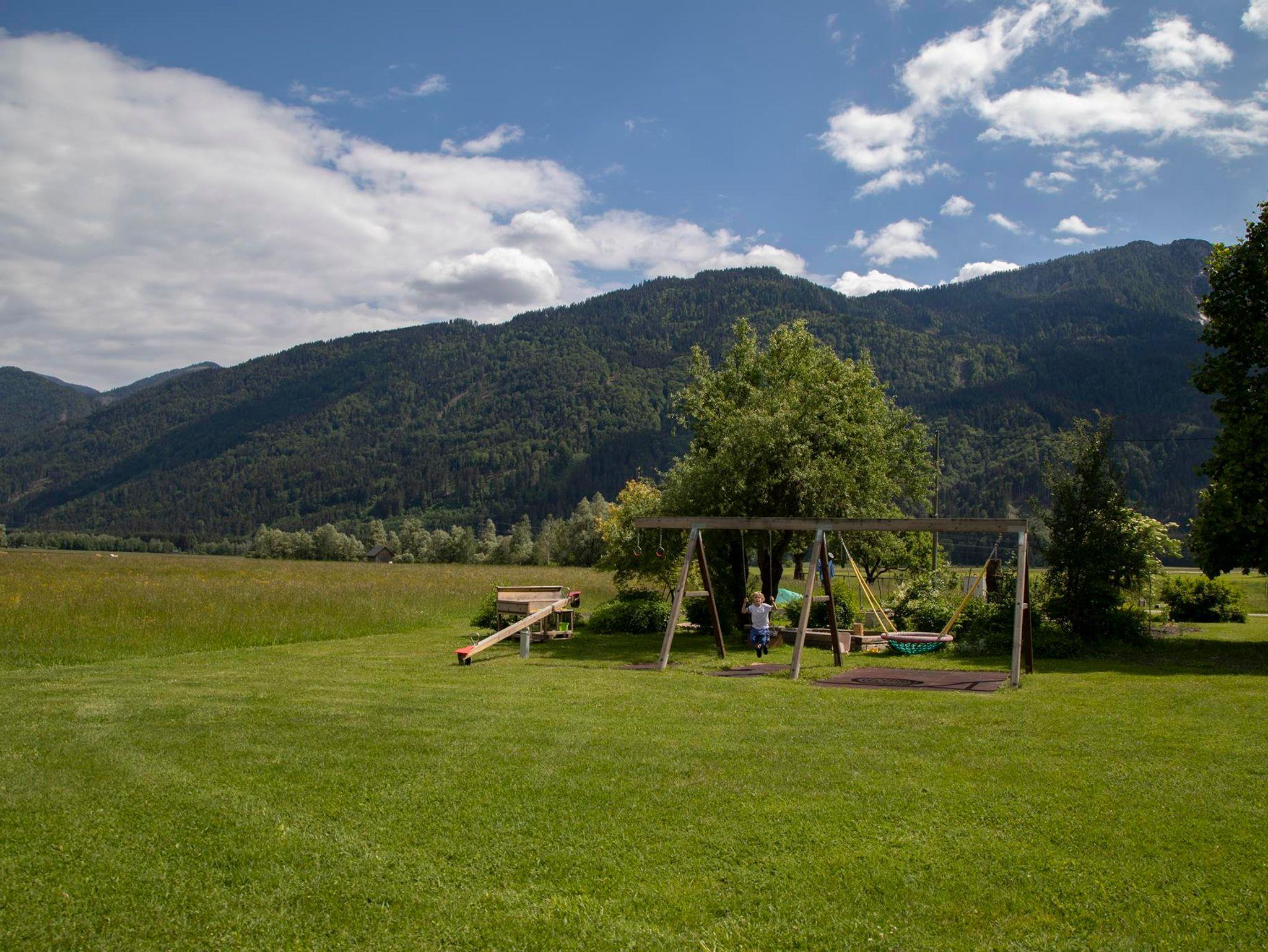 Über 10.000 m² Spiel- und Liegewiese, Kinderspielhaus und Kinderspielzimmer, Jugendraum mit Tischfußball, verschiedene Spielgeräte, bis 10 Fahrräder für groß und klein mit Kindersitzen sowie das bei Kindern sehr beliebte Go Kart. Die Ponys bürsten, mit den Katzen Spielen, die Schweinderln füttern und kratzen, die Tiere streicheln und natürlich die Mithilfe und Mitarbeit im Stall.