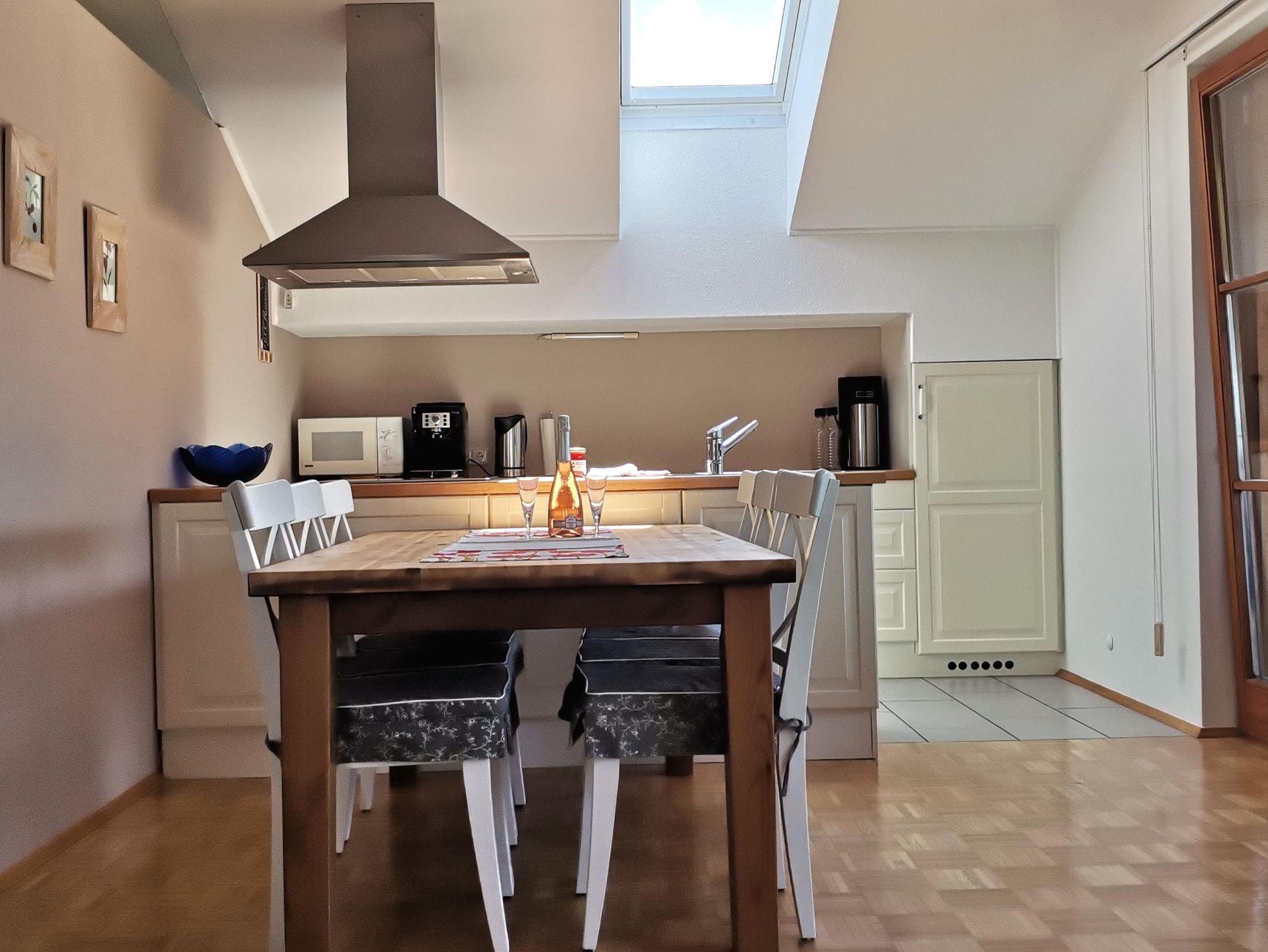 Appartement 120m2 mit Balkon und herrlichem Panoramablick vom Wohnraum aus, für 4-8 Personen,1 Doppelbettzimmer mit Dusche, 1 Doppelbettzimmer, 1 Zweibettzimmer,1 Dusche, extra WC, Küche mit großem Essplatz, Wohnbereich mit ausziehbarem Schlafsofa, SAT-TV