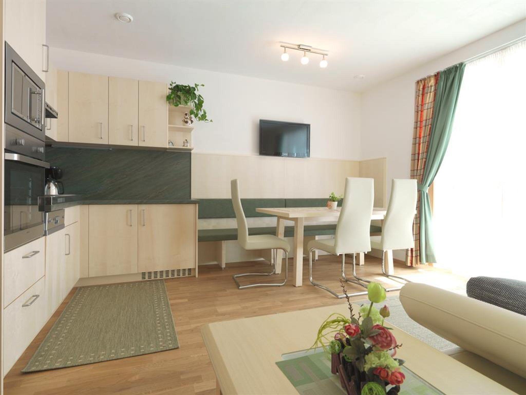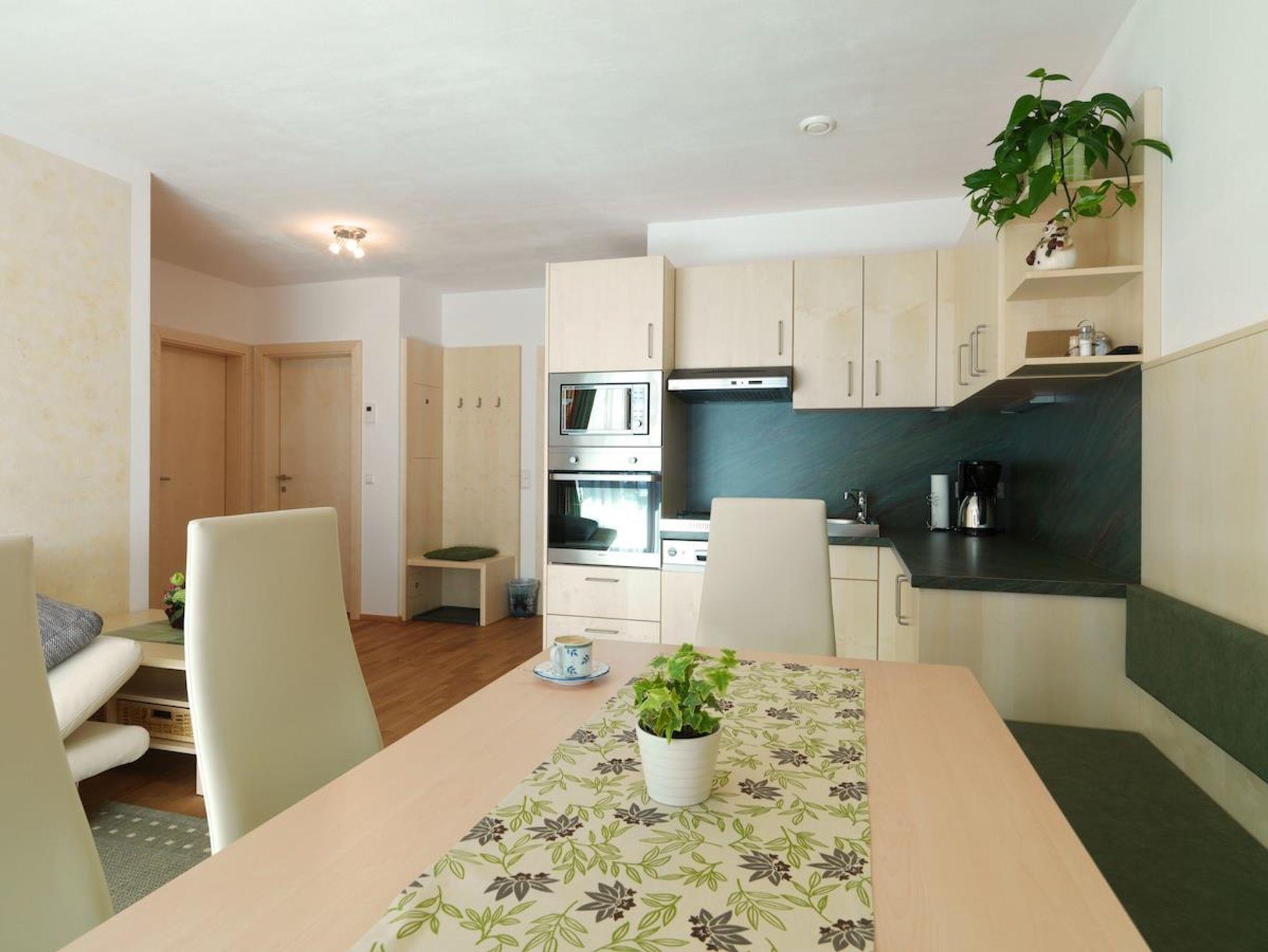 2 Doppelzimmer mit Doppelbetten, großer Wohnraum Couch, SAT TV, bestens ausgestatteter Küchenbereich mit Backrohr, Micro, Ceran Kochfeld, Eierkocher, Toaster, Teekocher, Kaffeemaschine uvm. Dusche, WC extra, Schi Schuhtrockner,Schidepot, kontrollierte Wohnraumlüftung, gratis W-LAN