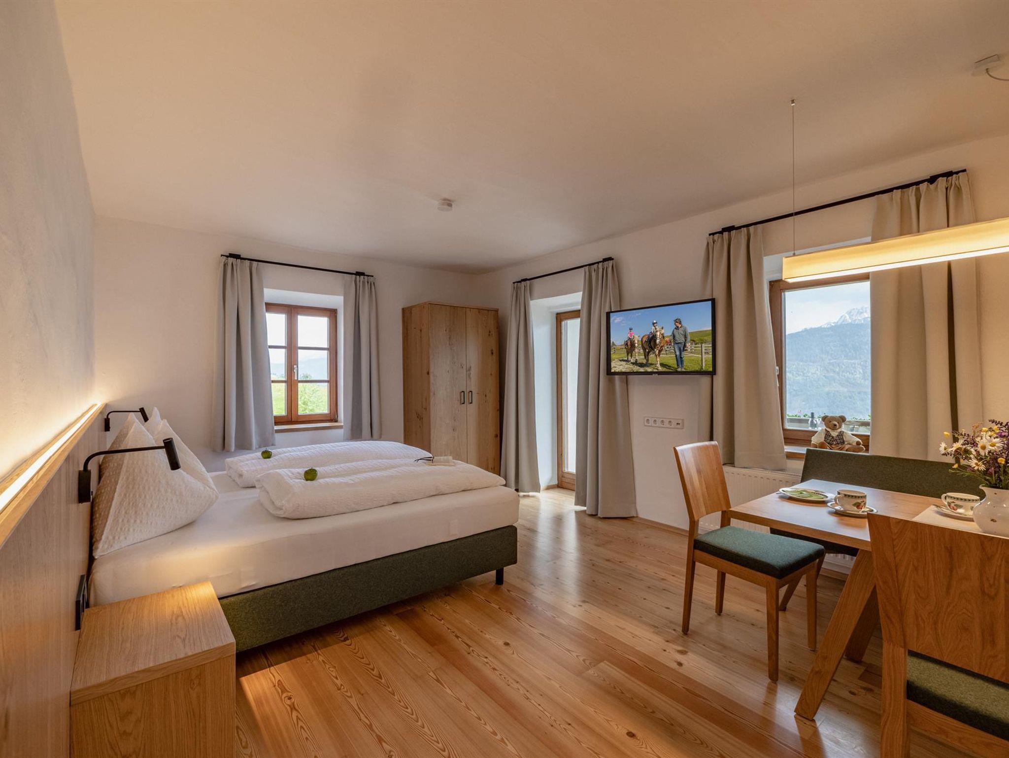 Drei getrennte Schlafzimmer sorgen für viel Platz und Privatsphäre – ideal für Familien mit Kindern. Die hauseigene Bettwäsche wird an der frischen Bergluft natürlich getrocknet und sorgt für eine angenehmes Schlafgefühl.