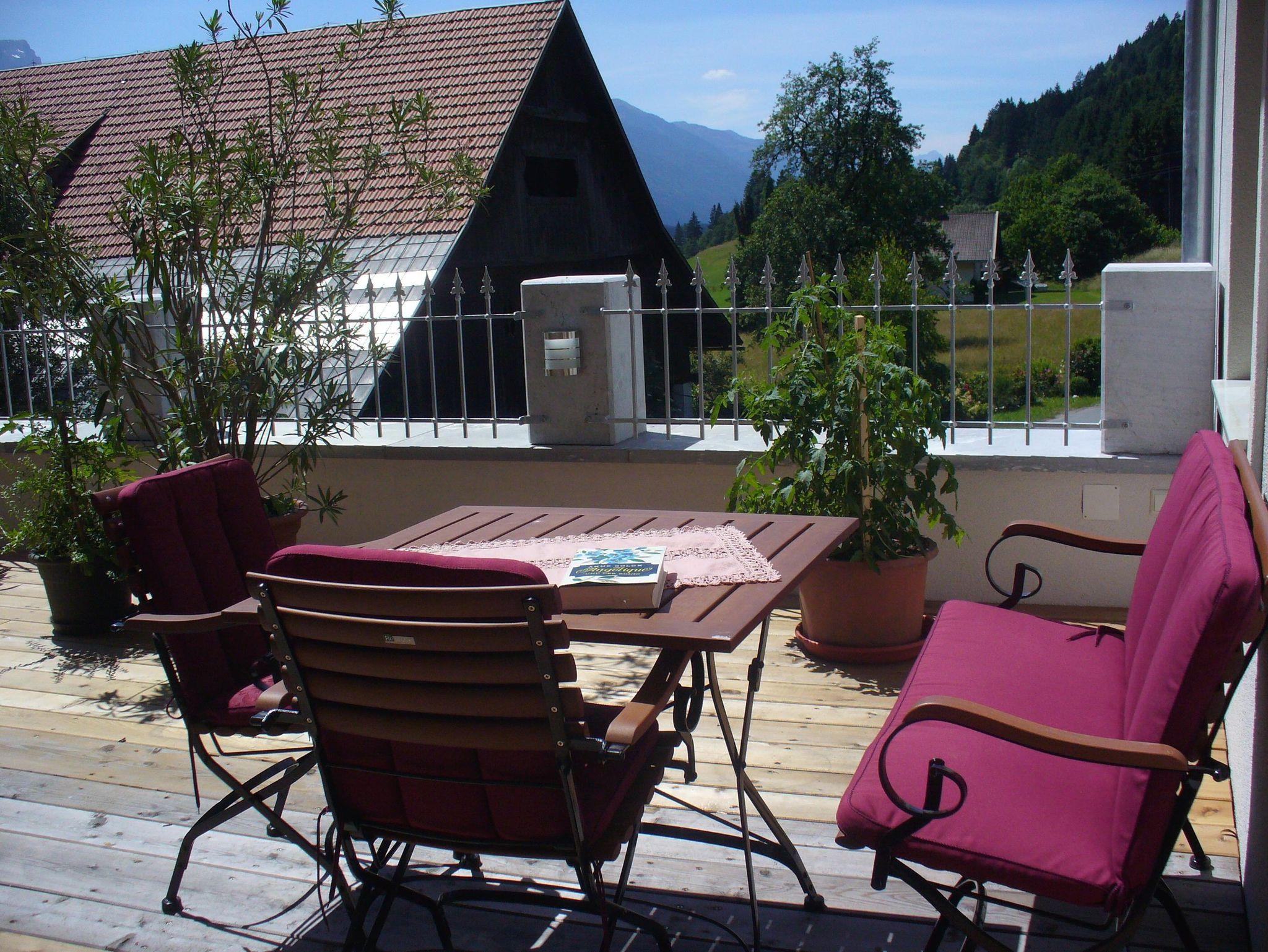 Appartment mit Wohnraum, Dusche und WC, Sat-TV, abgeschlossene Küche und Terrasse.