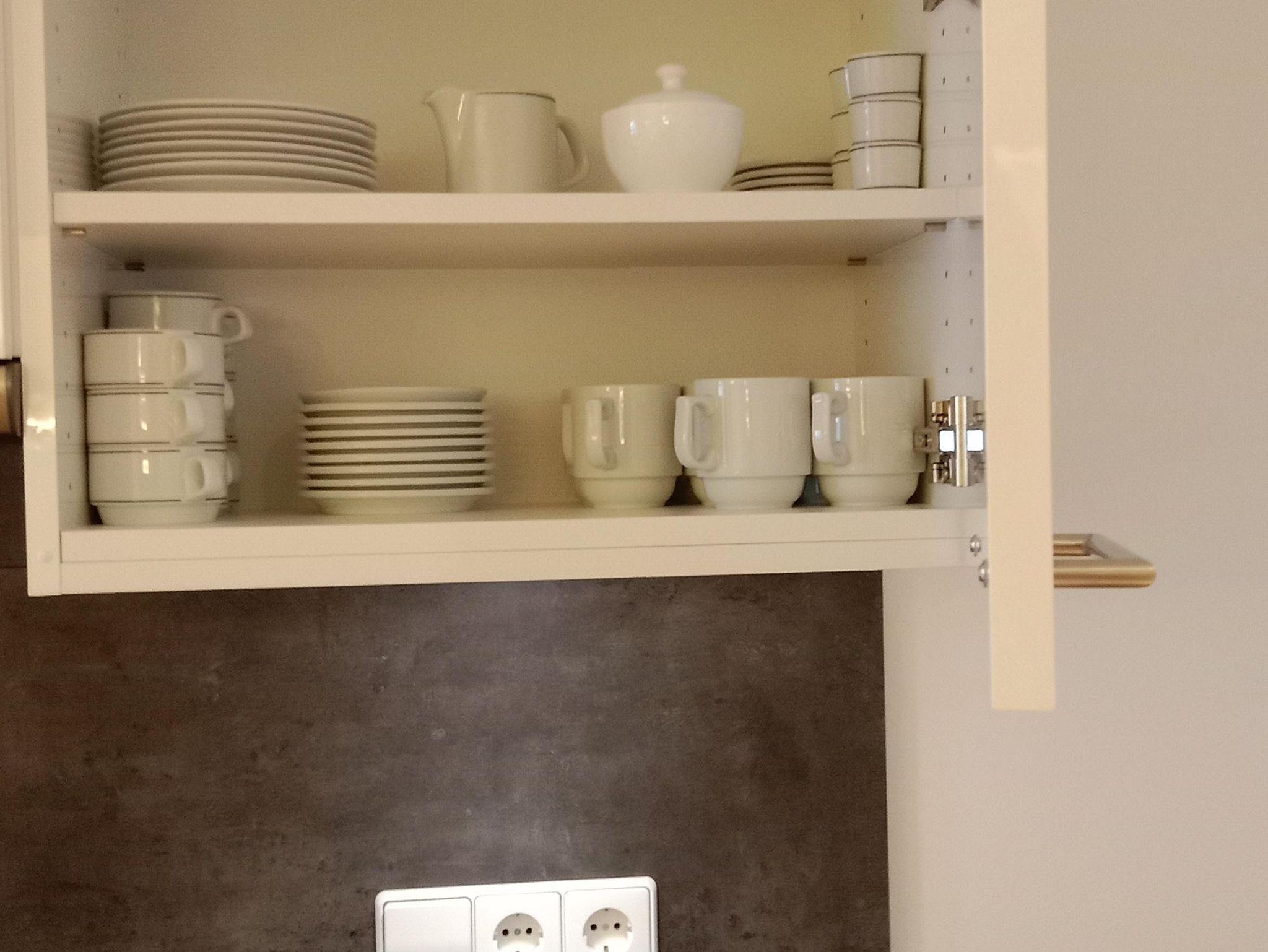 Küchenausstattung: Kochfeld, Backrohr Geschirrspüler, reichlich Geschirr, Wasserkocher, Kaffeemaschine (Nespresso oder Filter), Kühlschrank mit Gefrierfach;