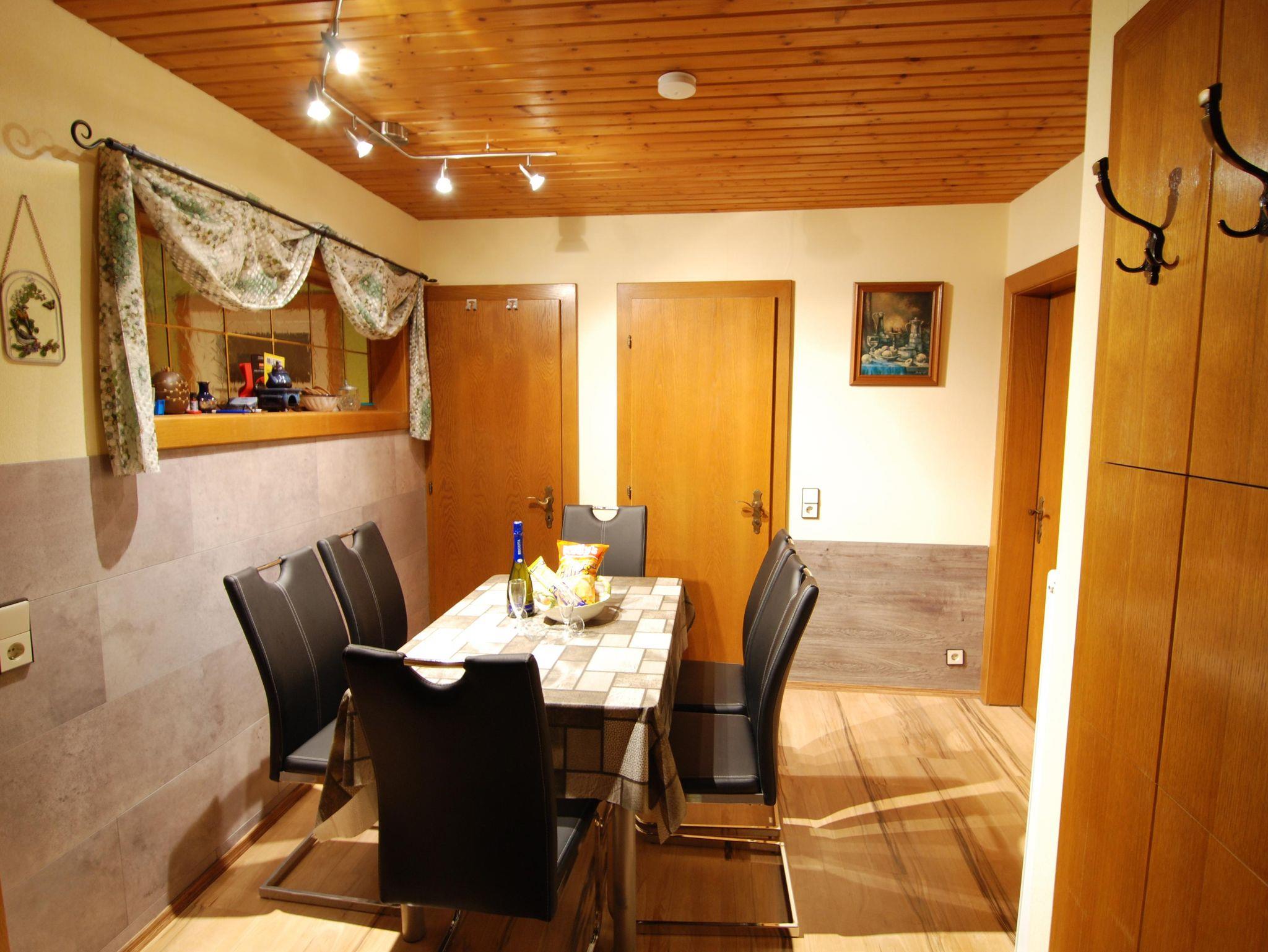 In zwei Zimmern befinden sich jeweils ein Doppelbett sowie ein Einzelbett. In beiden Zimmern sind ebenso Fernseher mit Satellitenanschluss zu finden. Im dritten Zimmer steht ein weiteres Doppelbett. In unserer Ferienwohnung gibt es auch einen schönen Vorraum mit Garderobe. Das Badezimmer verfügt über eine Dusche, ein WC und einen schönen Waschbereich. In der Küche findet man genügend Platz für bis zu 8 Personen. Mit einem großen Esstisch und einem Fernseher mit Satellitenanschluss steht auch gemütlichen Fernsehabenden nichts im Wege. Direkt von der Küche aus kommt man auf die Terasse wo sich auch der direkte Anschluss an den Garten mit Kamingrill befindet. Dort kann man gemütliche Grillabende genießen.