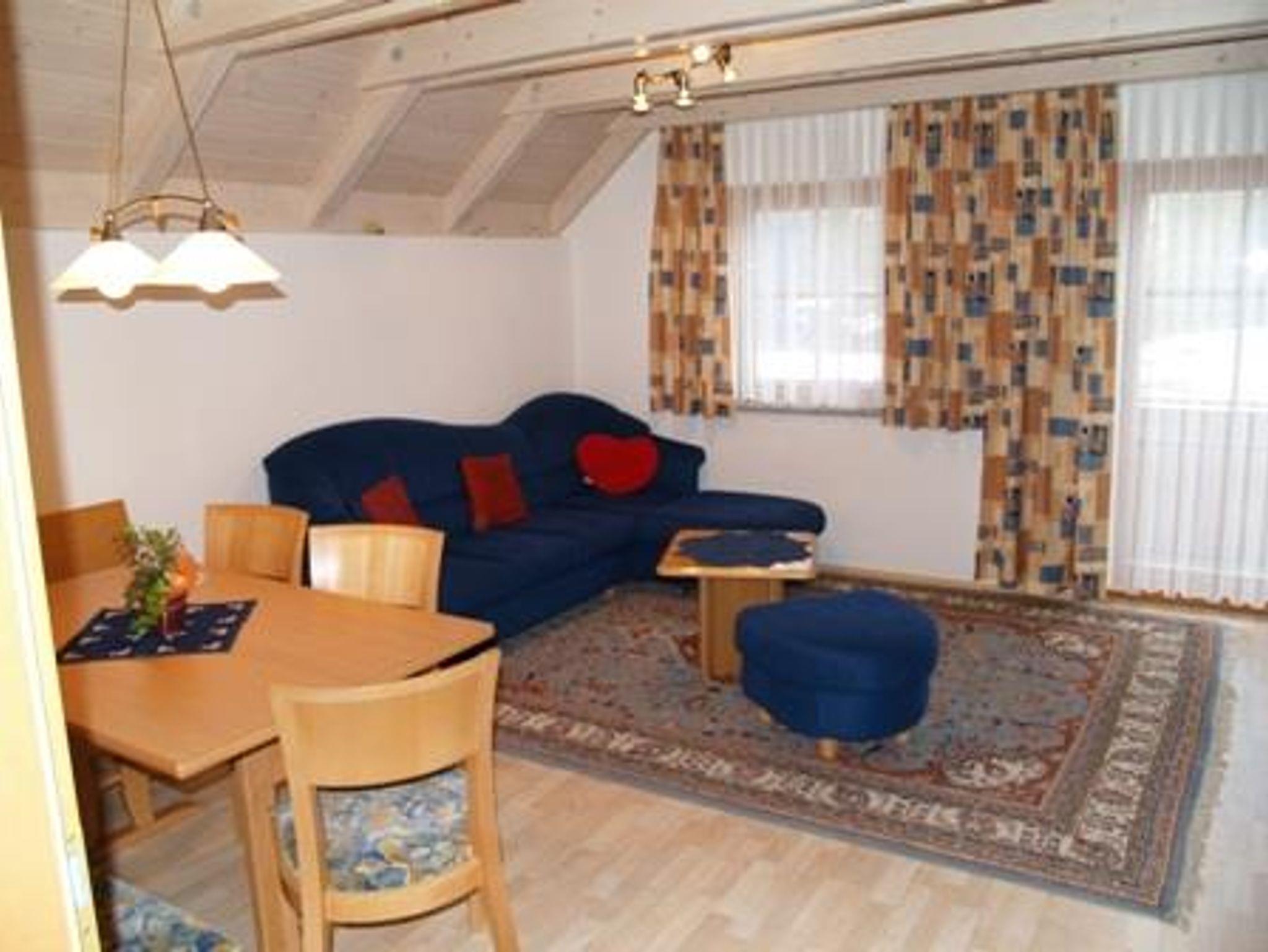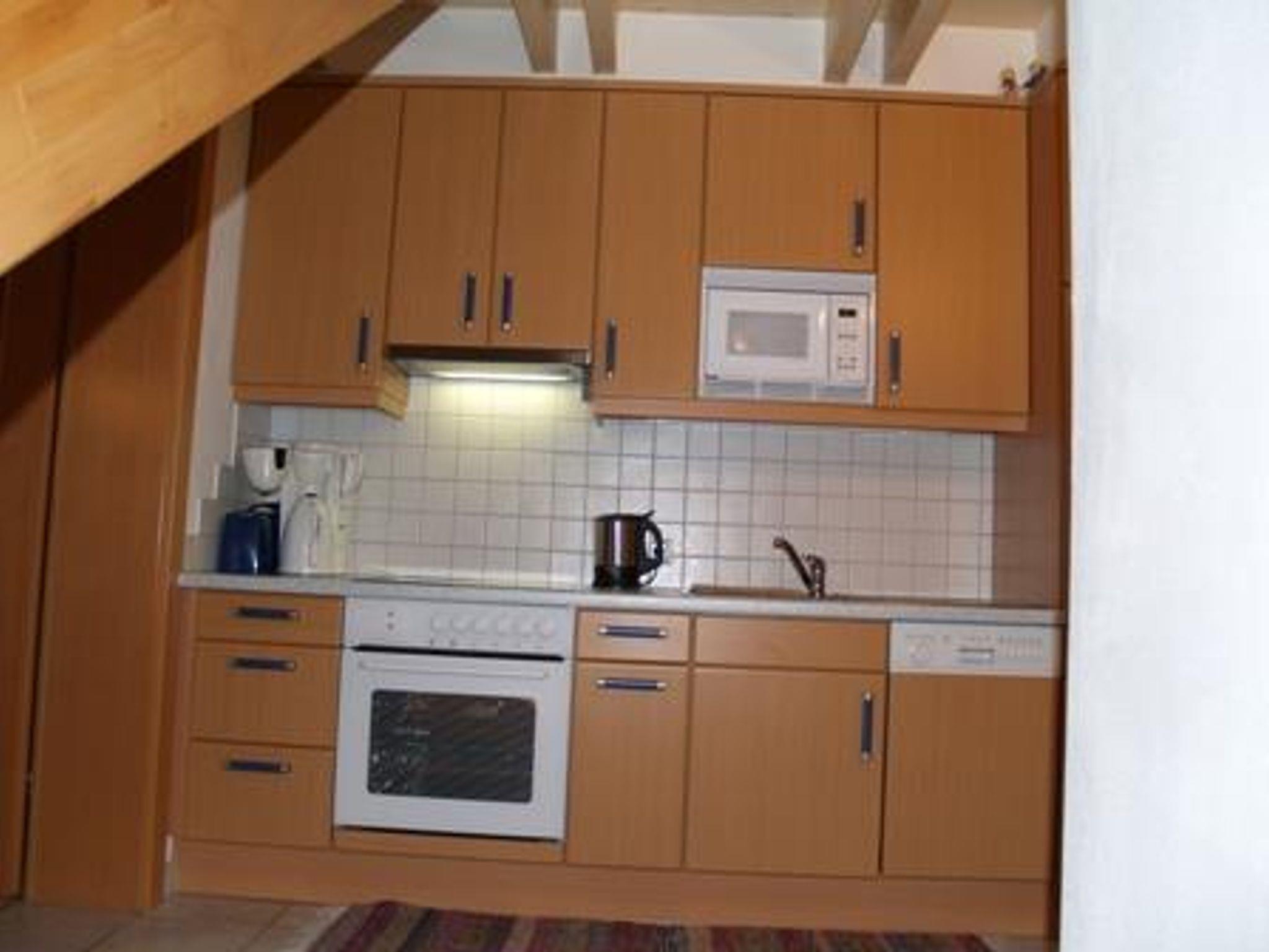 2-Etagen-Wohnung 65 m² mit Südbalkon, Vorraum, Einbauküche (Einbauherd, Micro, Dunstabzug, Geschirrspüler, Kühlautomat, Kaffeemaschine, Toaster, Wasserkocher), Dusche-WC Wohnbereich mit Essplatz für 4-6 Personen, Couch-Garnitur, 40-Zoll-Flachbild-Fernseher mit SAT-TV, Radio mit CD-Player, Internet-Anschluss (WIFI). 1 Doppelbett-Schlafzimmer und 1 Zweibett-Schlafzimmer in der oberen Etage. Bettwäsche und Handtücher vorhanden.
