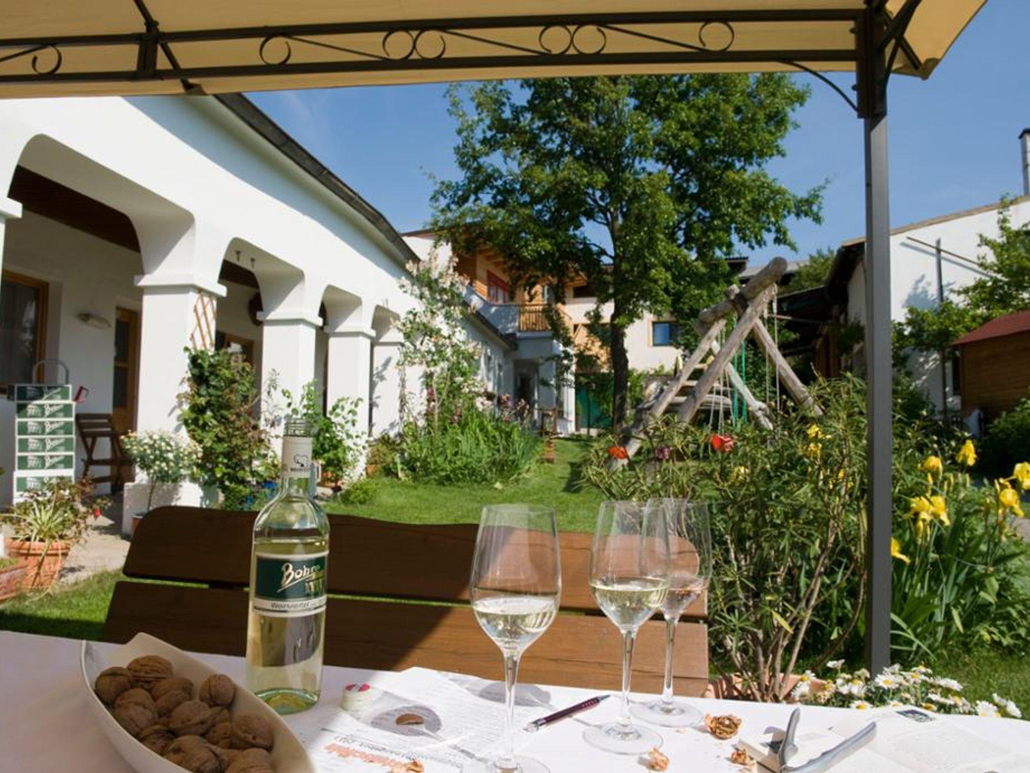 Ein Genießerhof wäre keiner ohne Wein. Im modernen Verkostungsraum lässt sich die Vielfalt des hauseigenen Weinguts in entspannter Atmosphäre entdecken. Die Weine spiegeln das Terroir des Weinviertels wider und können direkt vor Ort probiert werden. Wer nach einem genussvollen Tag zurücklehnt, kann im geschützten Innenhof die Ruhe genießen – begleitet von einem guten Glas Wein.