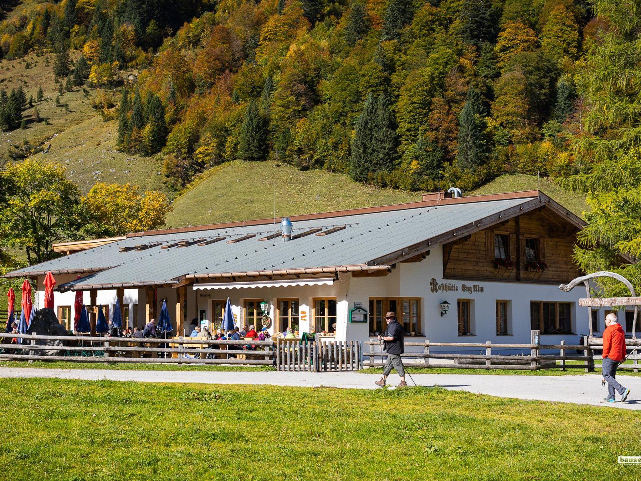 Das Almdorf auf 1.250 m Seehöhe: Die Engalm in einem der schönsten Gebiete der Alpen, direkt am Großen Ahornboden. Ausflugsziel für die ganze Familie und Ausgangspunkt unzähliger Wanderrouten. Hier können Sie losstarten, die Umgebung genießen und typisch tirolerisch schlemmen in der Eng Alm Rasthütte. Haustiere/Hunde sind bei Übernachtungen nicht gestattet.