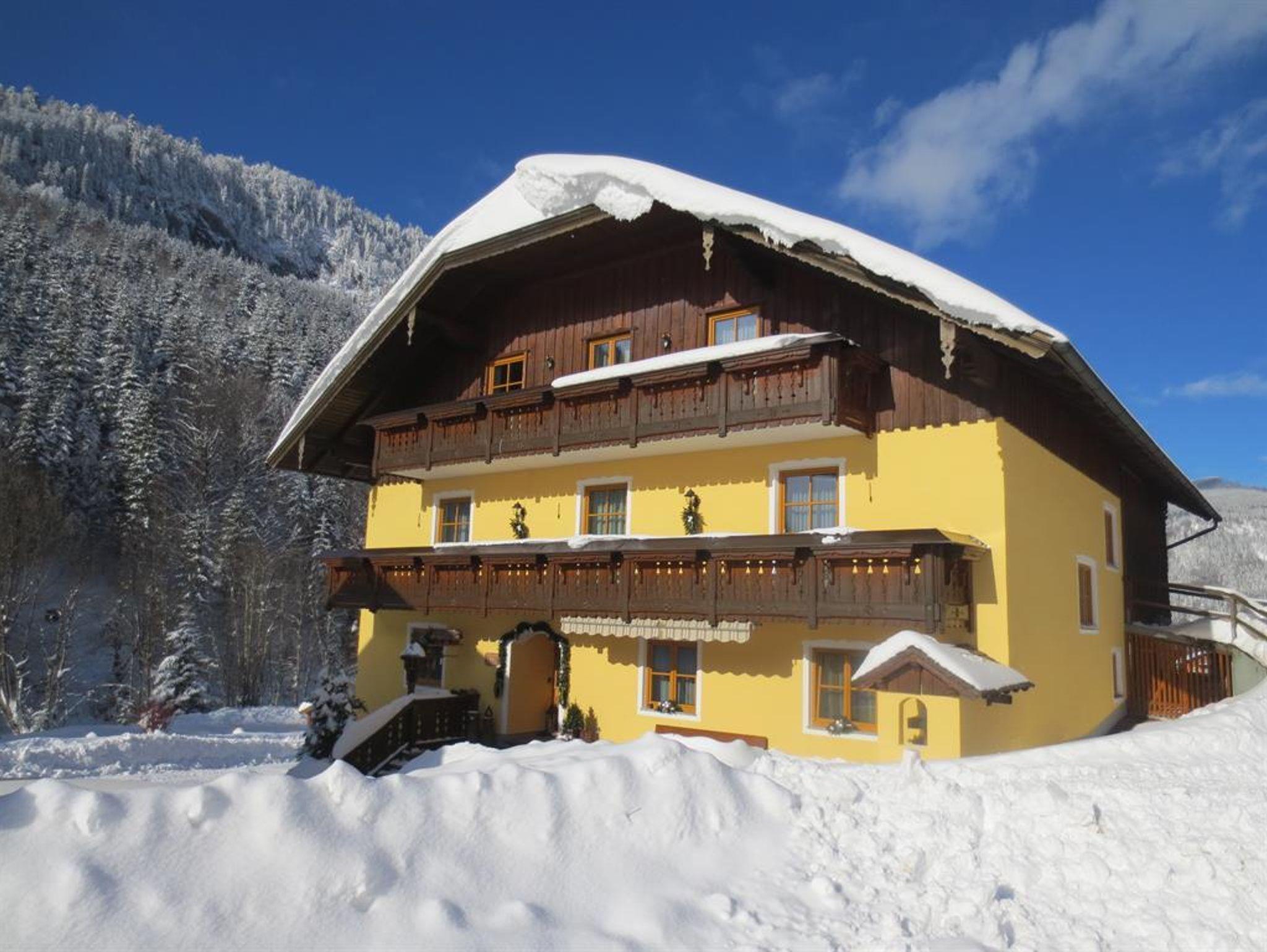 Unser Bio-Bauernhof umgeben von den tief verschneiten Berggipfeln der Osterhorngruppe in einem Seitental des Salzkammergutes . Nur 30km von der Mozartstadt Salzburg entfernt.
