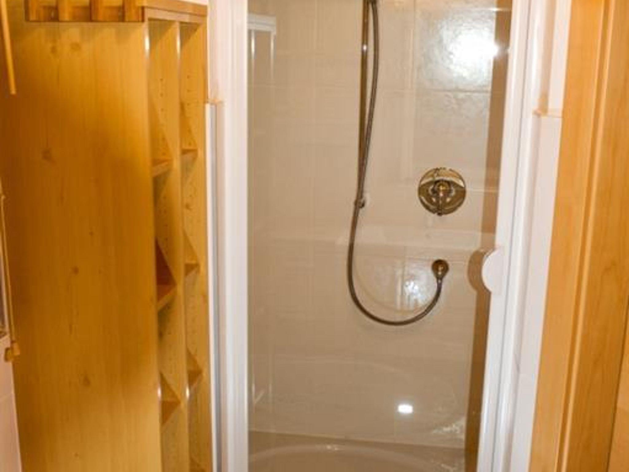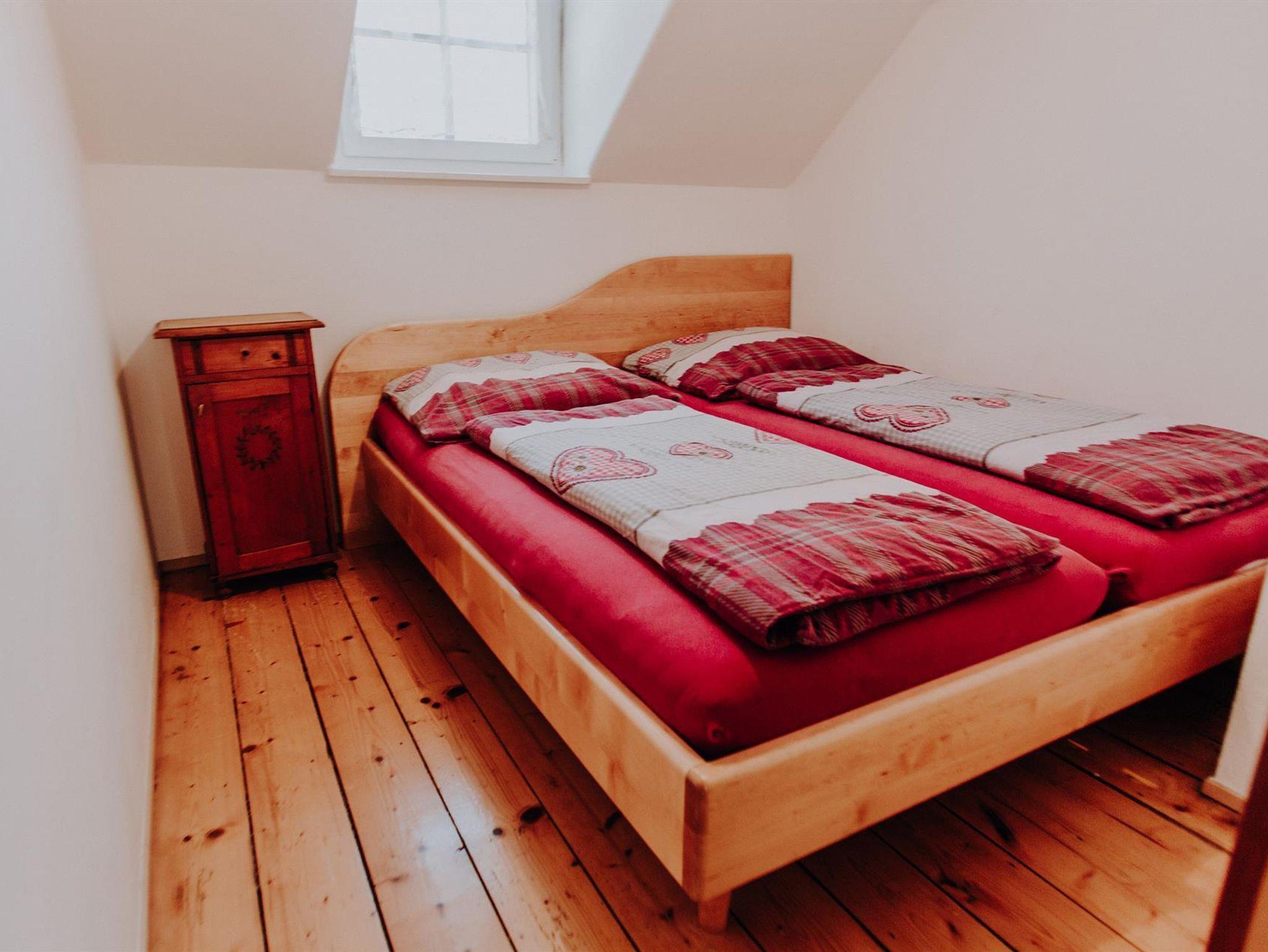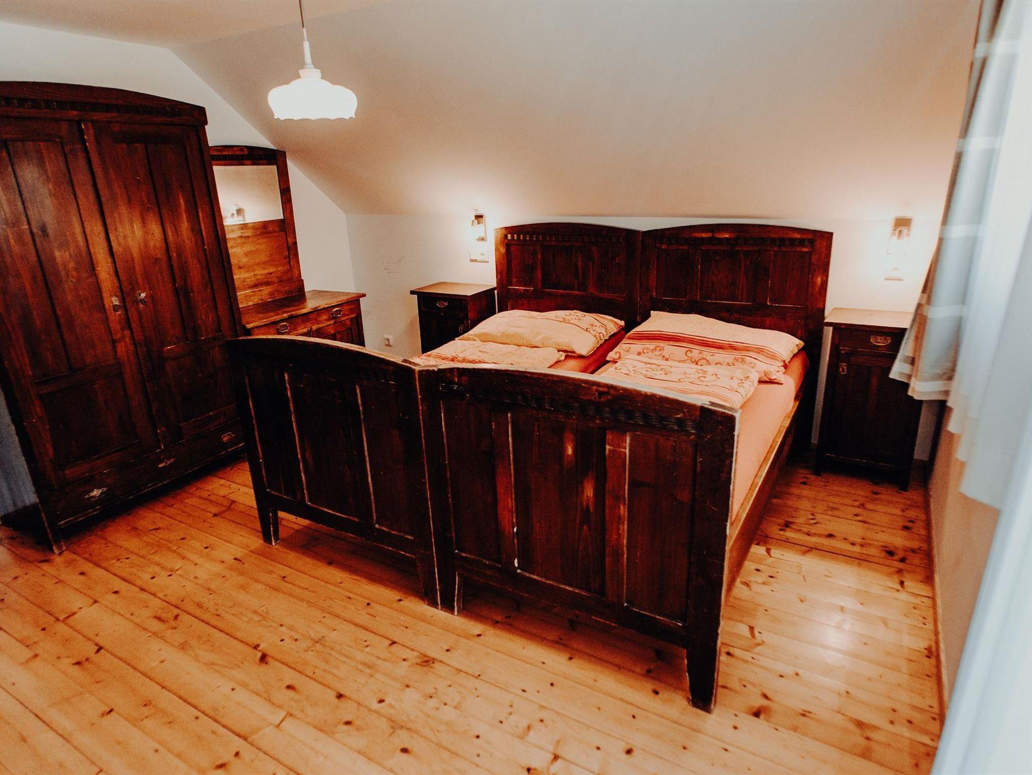 Bad mit Doppelwaschbecken und Dusche. 2 WC's Waschmaschine. Weiters gibt es eine Elektroheizung die das Haus auch in Abwesenheit auf min. 18° C hält. Im ersten Stock sind drei Schlafzimmer. Eines mit zwei Doppelbetten, eines mit einem Doppelbett und eines mit einem Doppelbett und einer ausziehbaren Couch wo gemütlich zwei Personen schlafen können.