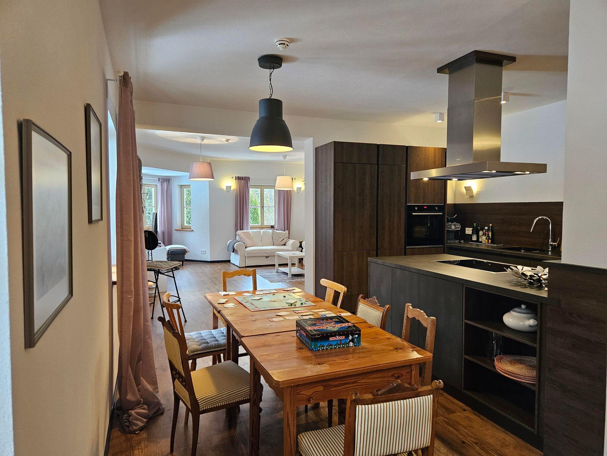 ?Voll ausgestattete Küche, offen mit dem Essbereich verbunden