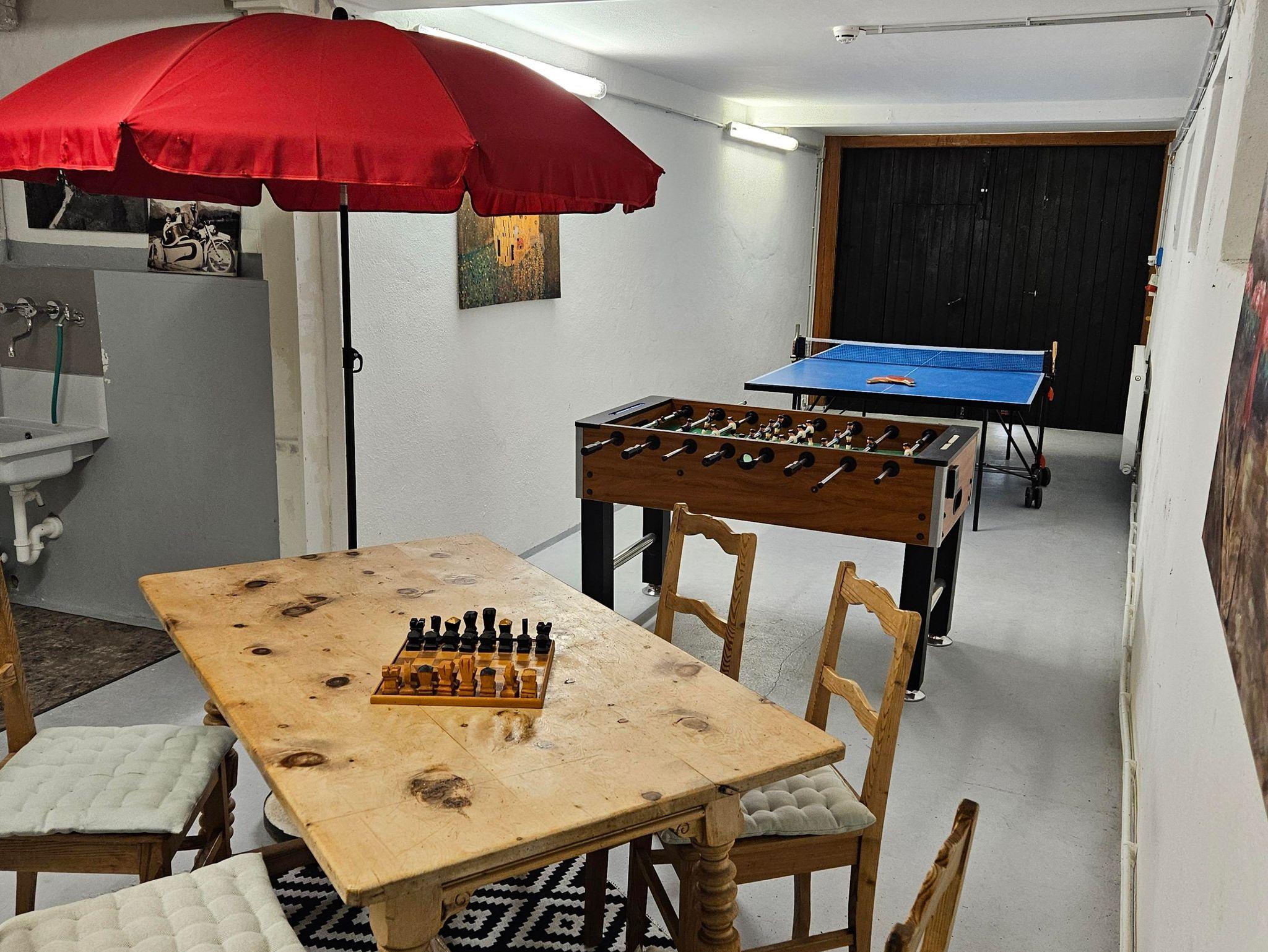 ?Gemeinsam genutzter Spielekeller mit Tischtennis, Billard & Dart