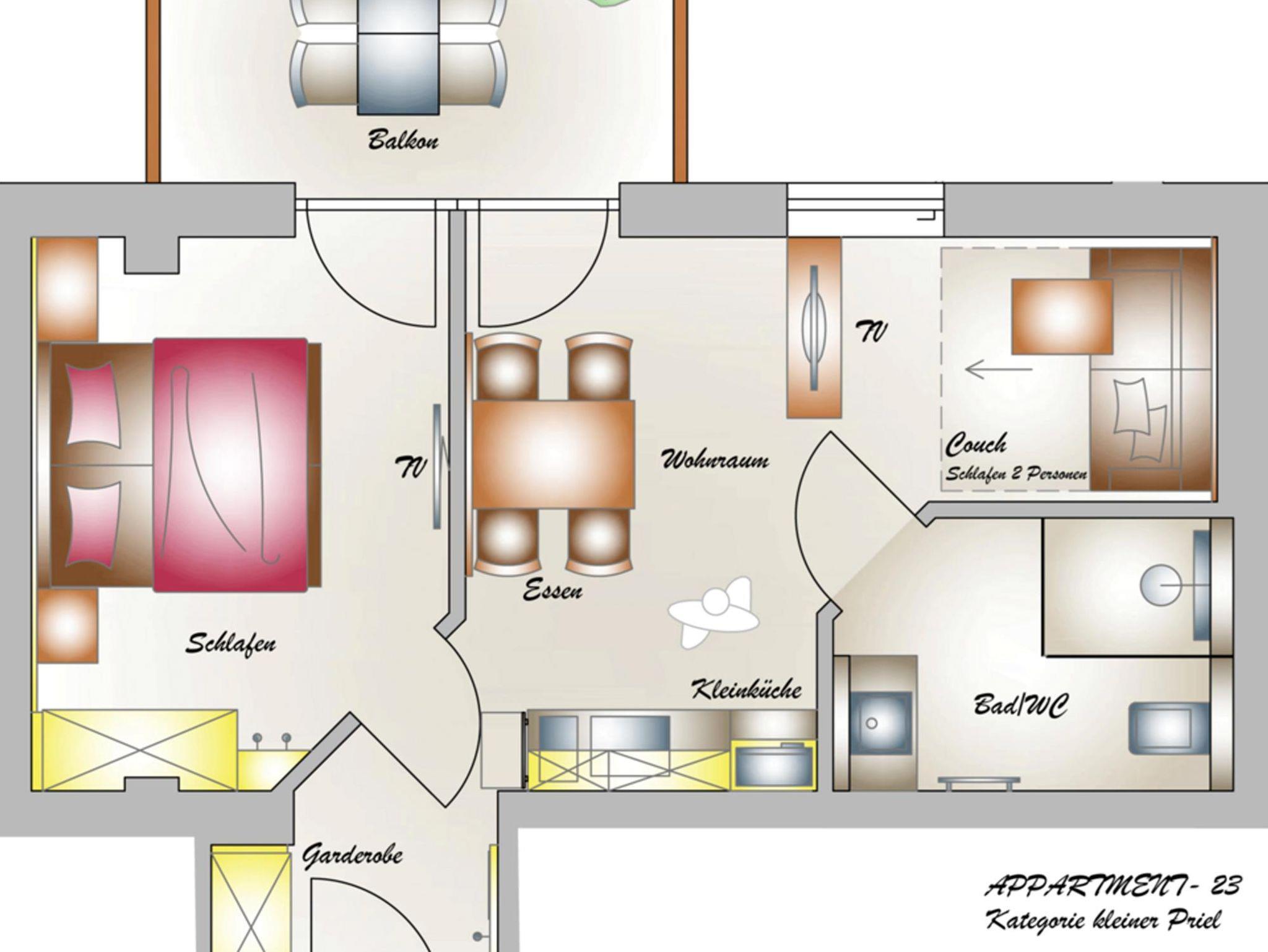 Unsere Kategorie Appartement Kleiner Priel mit einem wunderschönen Bergblick auf das gesamte Priel Massiv. Die modern- rustikalen Appartements verfügen über eine voll ausgestattete Küche, Bodenheizung, kostenloses Wlan, Safe, jeweils 2 Flat Sreen TV´s und Balkon.