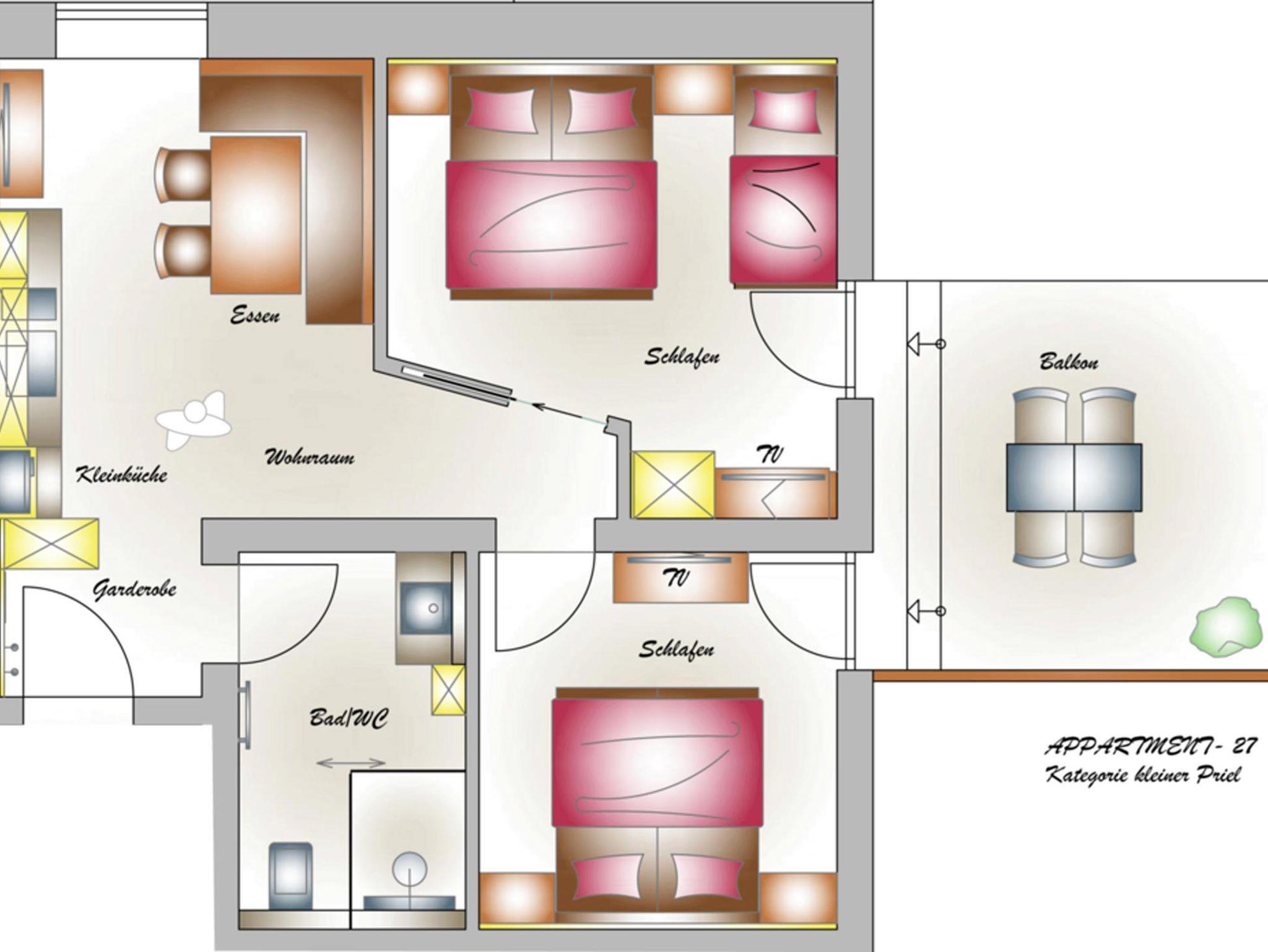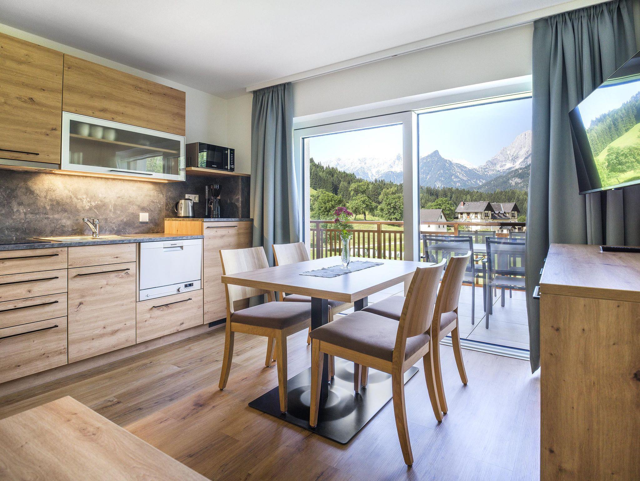 Unsere Kategorie Appartement Kleiner Priel mit einem wunderschönen Bergblick auf das gesamte Priel Massiv. Die modern- rustikalen Appartements verfügen über eine voll ausgestattete Küche, Bodenheizung, kostenloses Wlan, Safe, jeweils 2 Flat Sreen TV´s und Balkon.