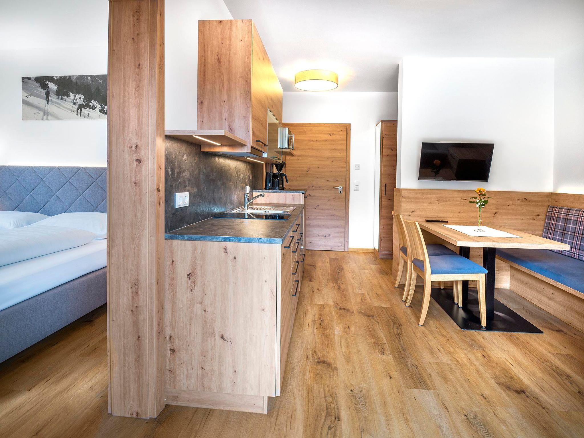 Alle 12 familienfreundlichen Top modernen Apartements verfügen über eine voll ausgestattete Küche, Bodenheizung, kostenloses Wlan, Safe, jeweils 2-3 Flatscreen TV´s und Balkon mit einzigartigen Bergblick. Die Skibus Haltestelle befindet sich in unmittelbarer Nähe.