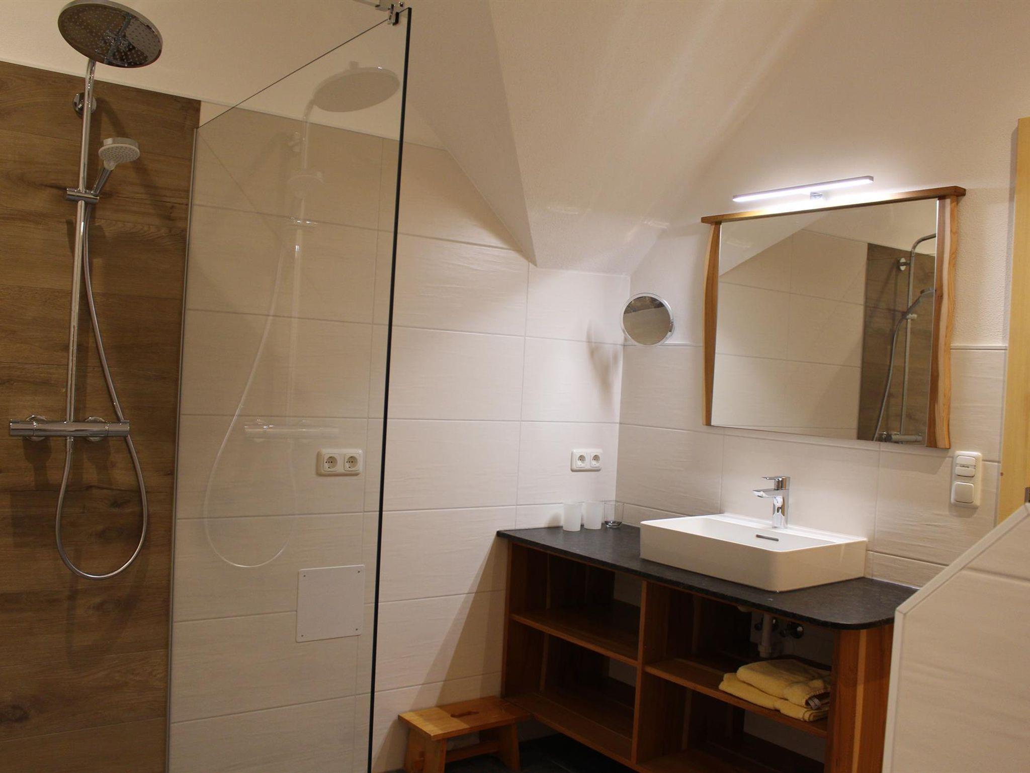 Gemütlich und großzügige Ferienwohnung mit zwei Schlafzimmern, große südseitige Wohnküche mit Panoramaschiebetür, Kuschelecke, Ausstattung mit Vollholzmöbel, geräumige Dusche mit Regenbrause und zwei Waschtische, WC getrennt, Wohnraumlüftung, SAT-TV, gratis Internet