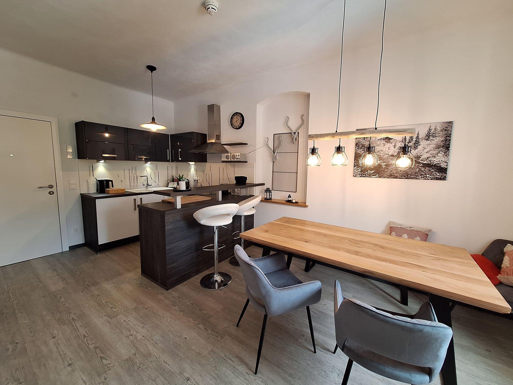 Die großzügige Ferienwohnung im 1. Stock bietet vier separate Räume und viel Platz zum Entspannen und Wohlfühlen. Hochwertige Ausstattung, moderne Einrichtung und eine angenehme Fußbodenheizung sorgen für Wohnkomfort im Sommer- wie im Winterurlaub.
