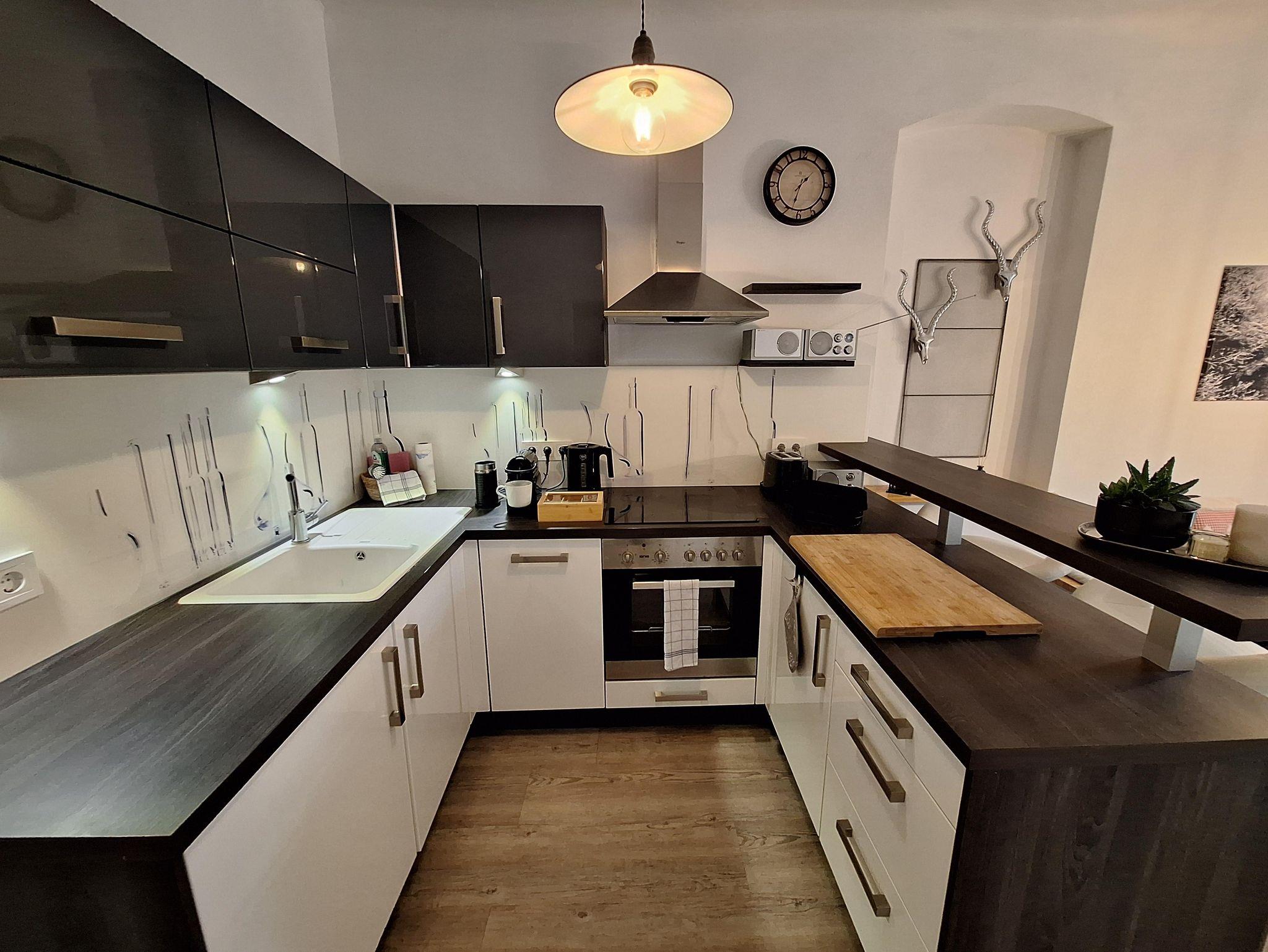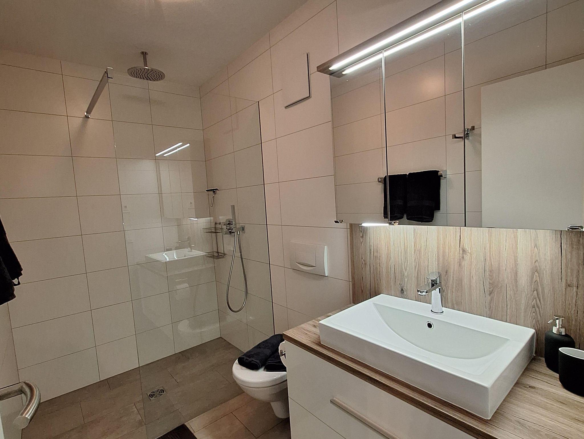 Die Ferienwohnung überzeugt mit einem modernen Badezimmer inklusive großzügiger Regendusche – perfekt zum Entspannen nach einem aktiven Tag in den Bergen. Die voll ausgestattete Küche mit gemütlichem Essbereich lädt zum gemeinsamen Kochen und Verweilen ein. Über die Küche gelangt ihr in das erste Schlafzimmer mit großem Queensize-Bett, Fernseher und geräumigem Kleiderschrank. Ein weiteres Schlafzimmer bietet eine große Ausziehcouch sowie einen eigenen Fernseher – ideal für Kinder, Freunde oder zusätzliche Gäste. Alle Zimmer verfügen über einen direkten Zugang zum Balkon und bieten somit viel Licht, frische Bergluft und einen wunderbaren Ausblick.