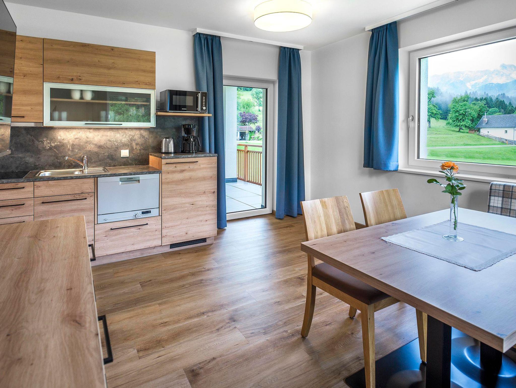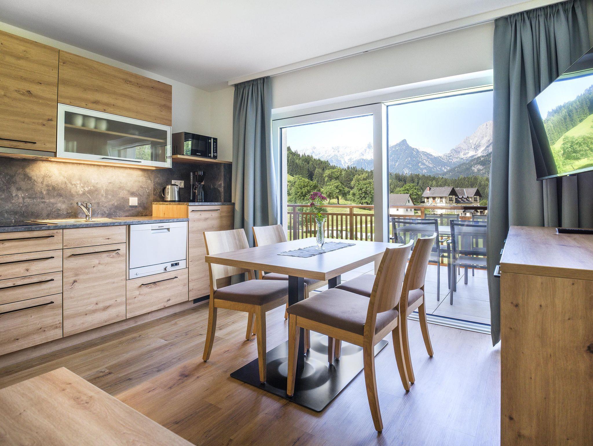 Unsere Kategorie Appartement Spitzmauer mit einem wunderschönen Bergblick auf das gesamte Priel Massiv. Die modern- rustikalen Appartements verfügen über eine voll ausgestattete Küche, Bodenheizung, kostenloses Wlan, Safe, jeweils 2 Flat Sreen TV´s und Balkon.