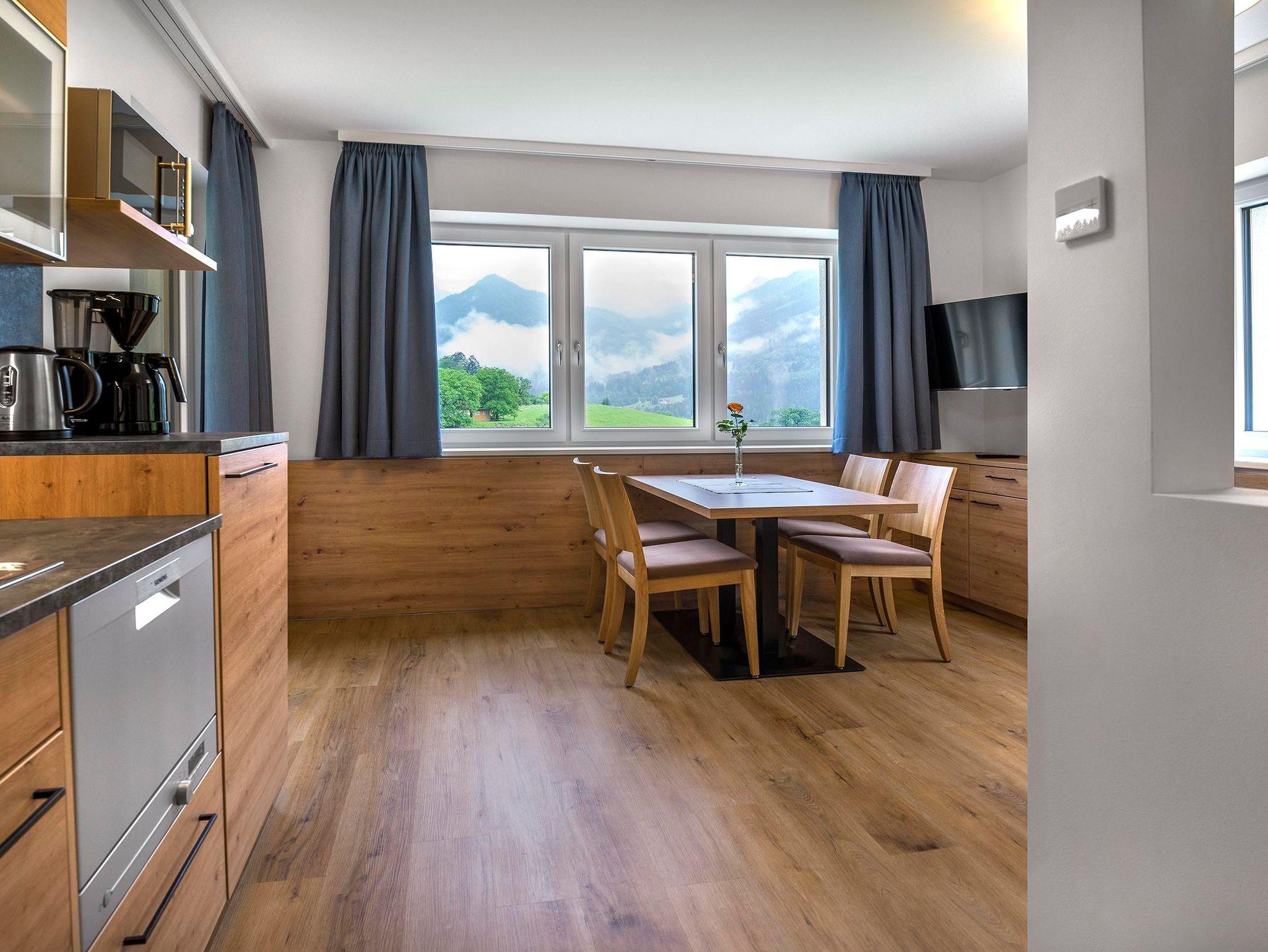 Alle 12 familienfreundlichen Top modernen Apartements verfügen über eine voll ausgestattete Küche, Bodenheizung, kostenloses Wlan, Safe, jeweils 2-3 Flatscreen TV´s und Balkon mit einzigartigen Bergblick. Die Skibus Haltestelle befindet sich in unmittelbarer Nähe.