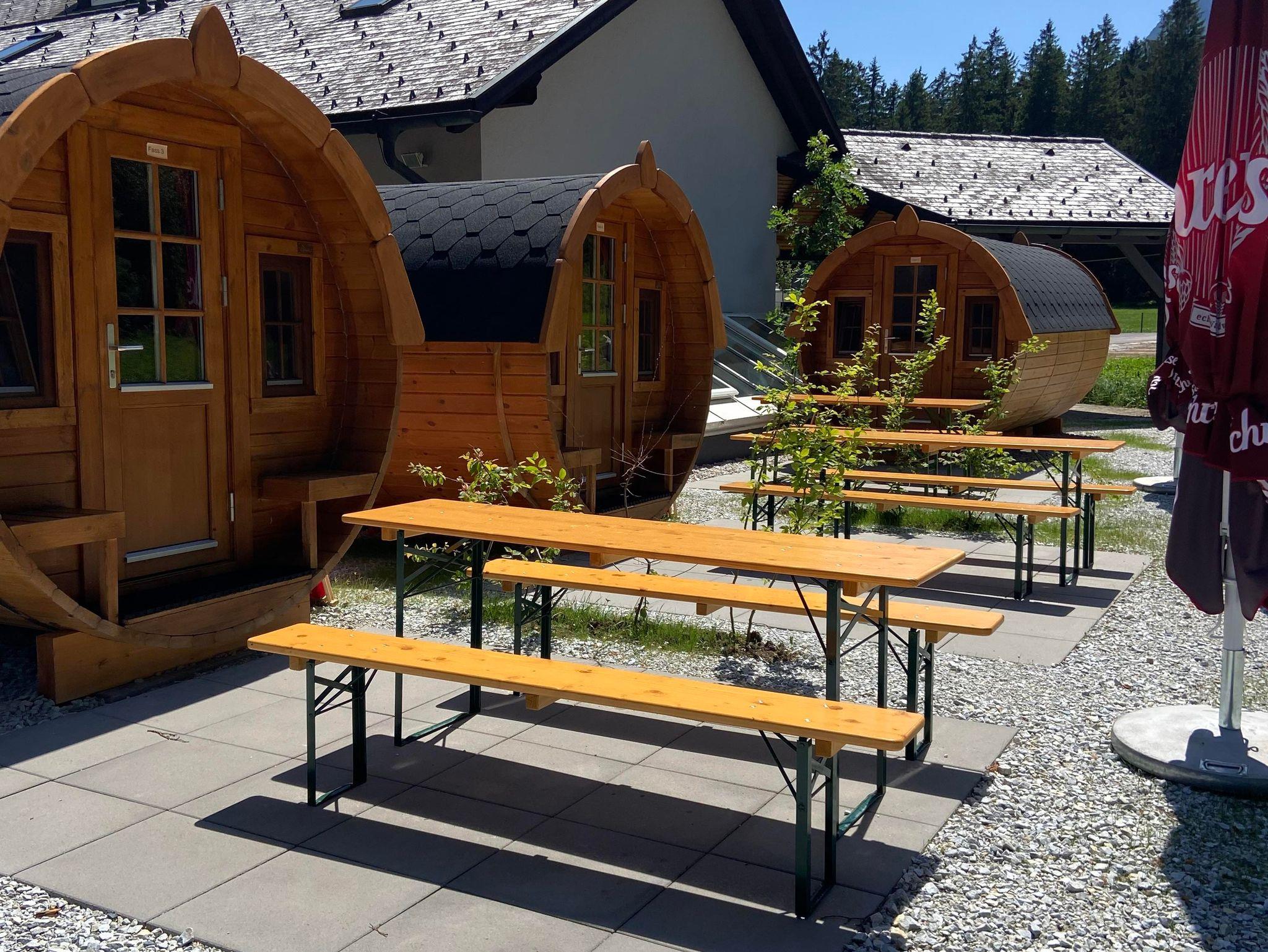 Die komplette und durchdachte Ausstattung mit Strom, Licht und integriertes kleines Infrarot Deckenpanel als Wärmequelle sorgt auch bei schlechtem Wetter für einen behaglichen Aufenthalt im Holzfass. Die großen Fässer beinhalten auch Kühlschrank, Mikrowelle, Wasserkocher und Kaffeemaschine.