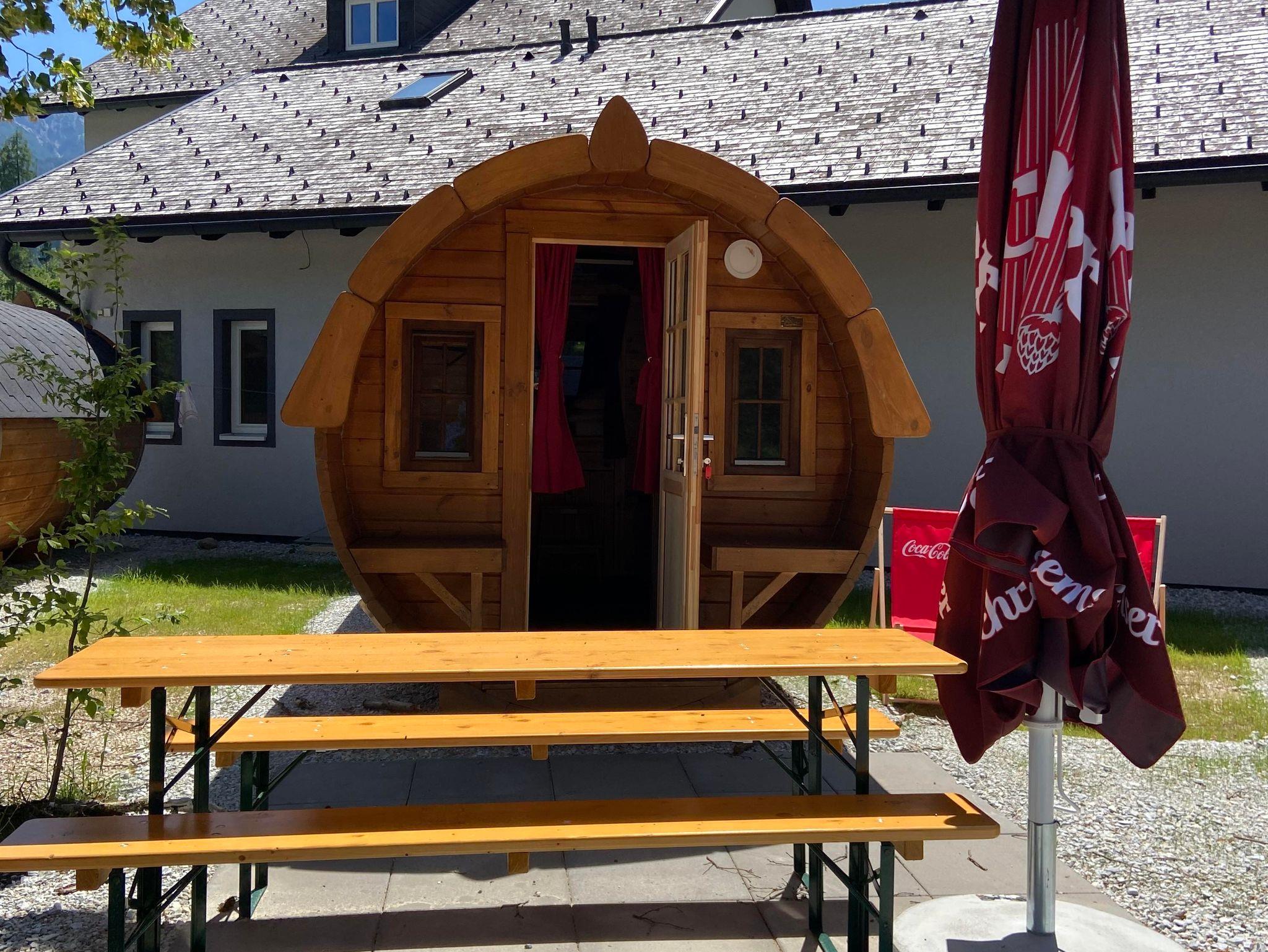 Die massiven Holzfässer aus unbehandeltem Kiefernholz sind wahre Raumwunder: