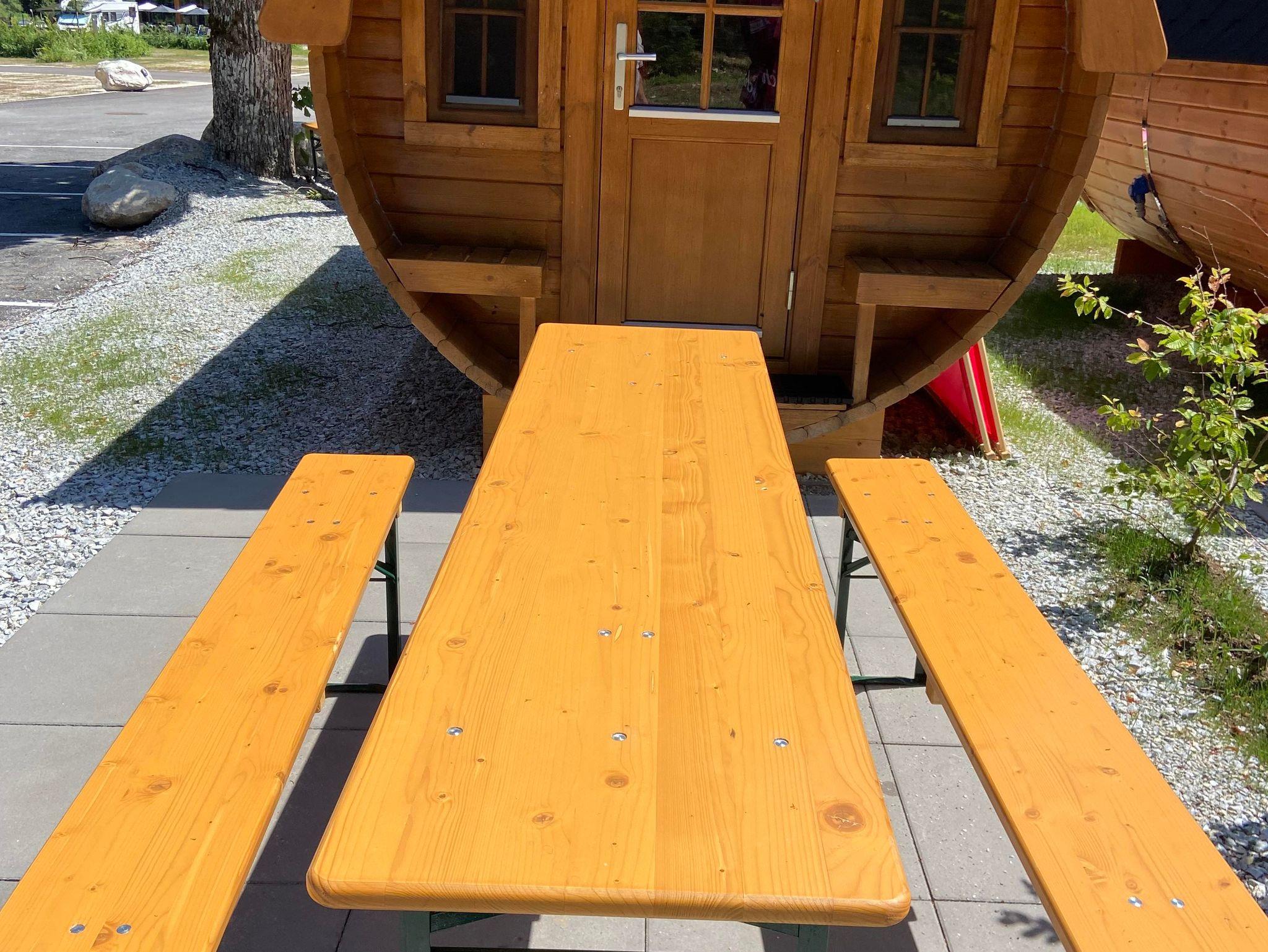 Die komplette und durchdachte Ausstattung mit Strom, Licht und integriertes kleines Infrarot Deckenpanel als Wärmequelle sorgt auch bei schlechtem Wetter für einen behaglichen Aufenthalt im Holzfass. Die großen Fässer beinhalten auch Kühlschrank, Mikrowelle, Wasserkocher und Kaffeemaschine.