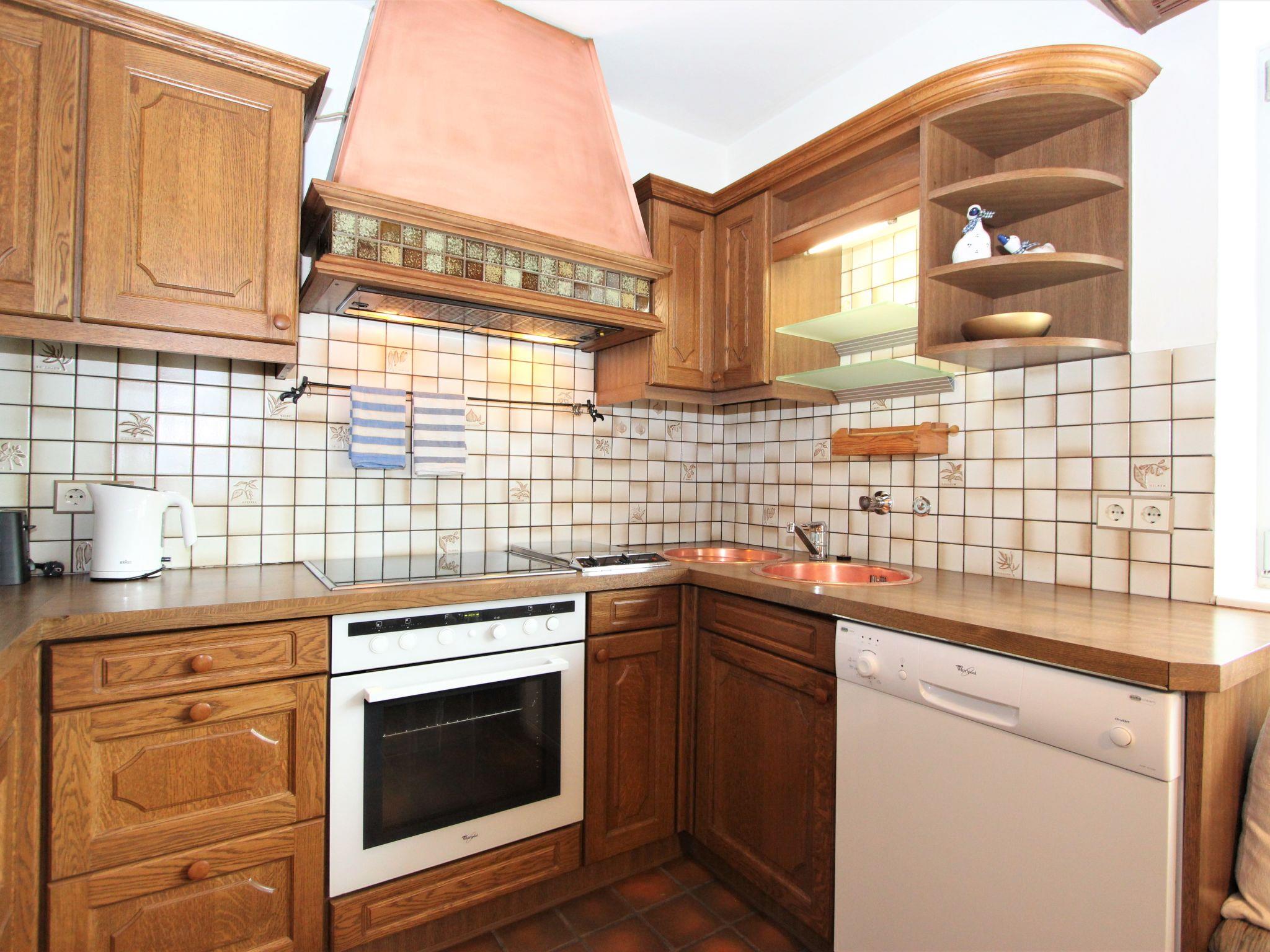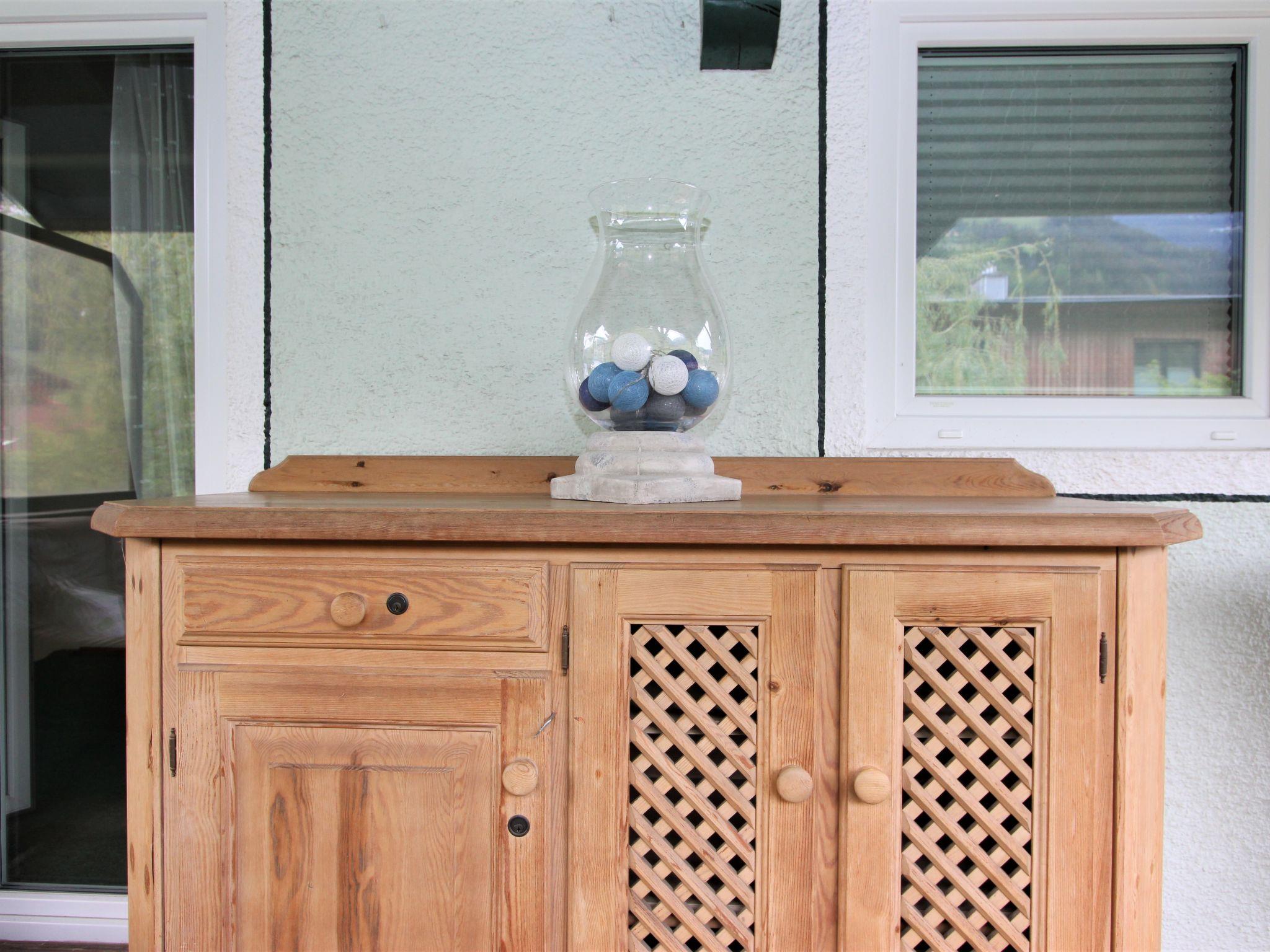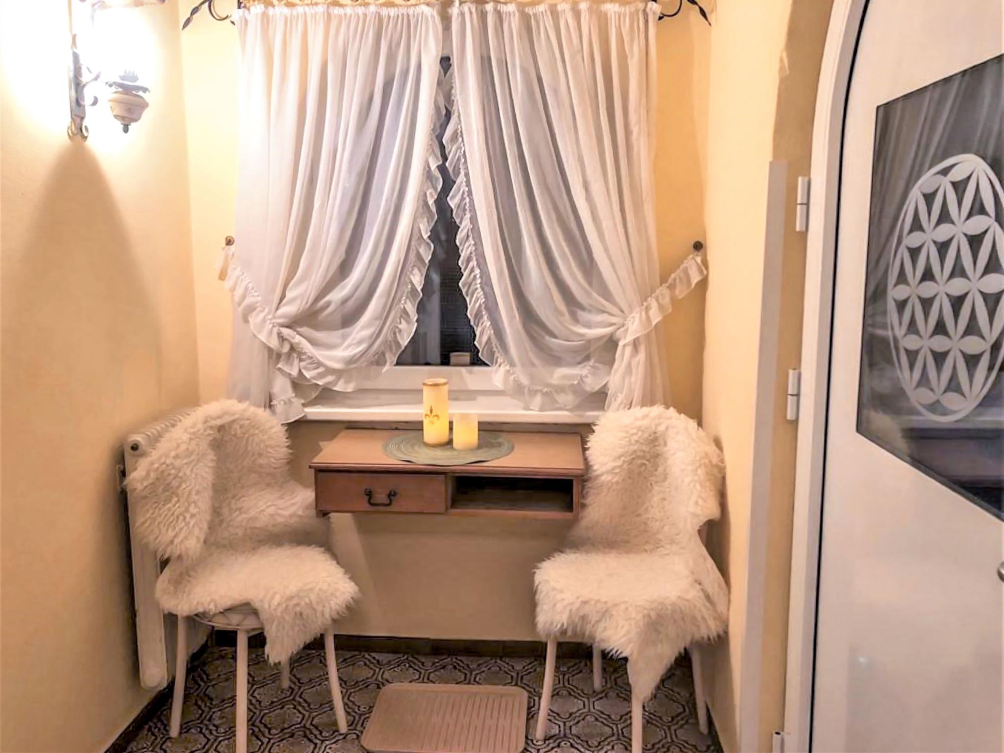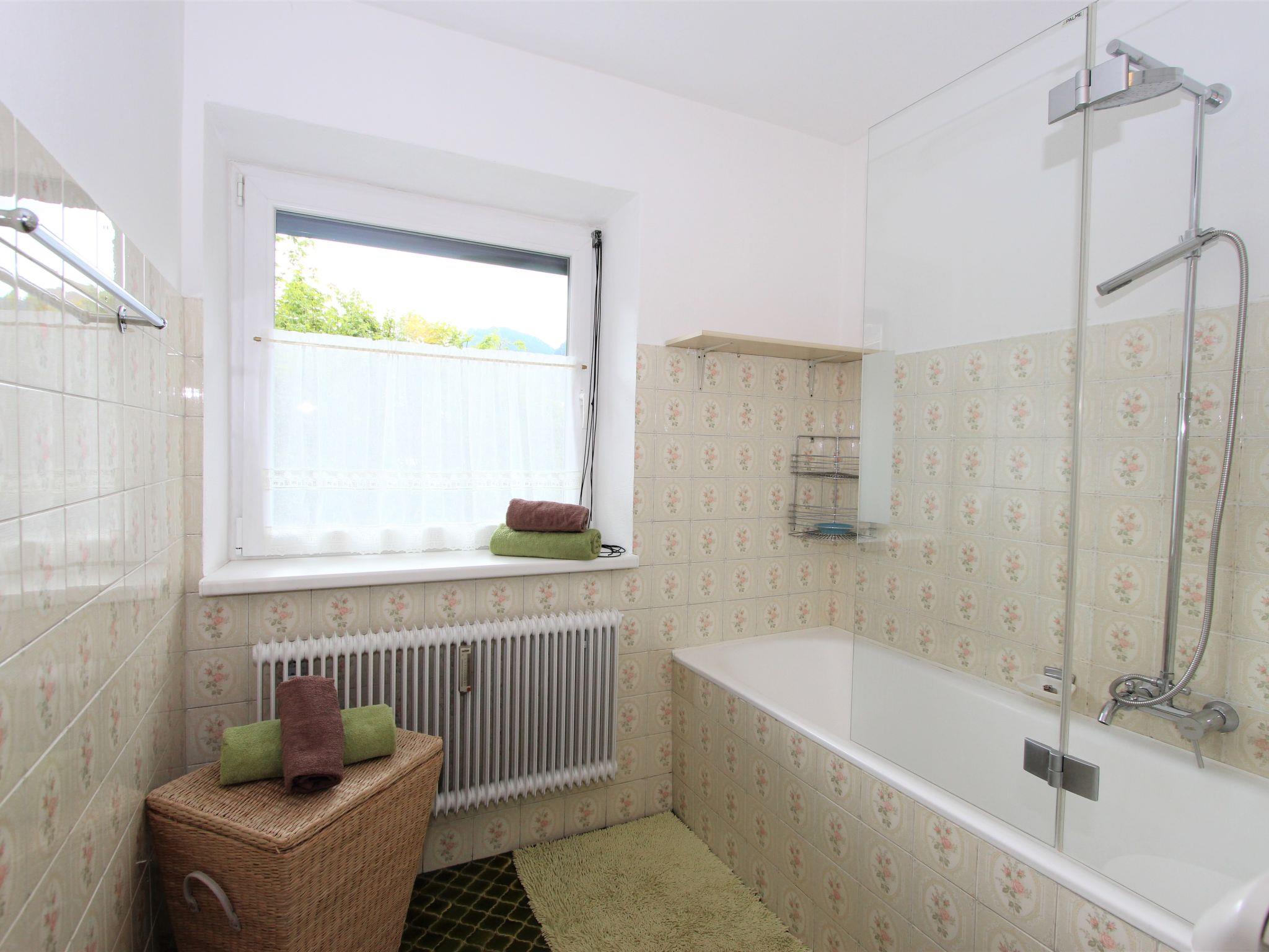 3-room apartment 86 m2, on the upper ground floor. Renovated in 2018, cosy furnishings: entrance hall. Large living/sleeping room with 1 double sofabed and satellite TV (flat screen). 1 double bedroom. 1 double bedroom with bath/WC. Kitchen-/living room (oven, dishwasher, 4 ceramic glass hob hotplates, grill) with dining nook and satellite TV (flat screen), tiled stove. Large terrace 20 m2, roofed. Terrace furniture, box-room. Beautiful view of the mountains and the countryside. Facilities: washing machine. Internet (WiFi). Please note: non-smokers only. The beautiful, large terrace is available for single use, it is situated a half-floor higher than the apartment and is accessible via the stairwell. An additional toilet is available (next door, same floor). The tiled stove is not heated with wood, but electrically. Warning: No charging facility for electric cars. Key collection 7 km from the apartment.