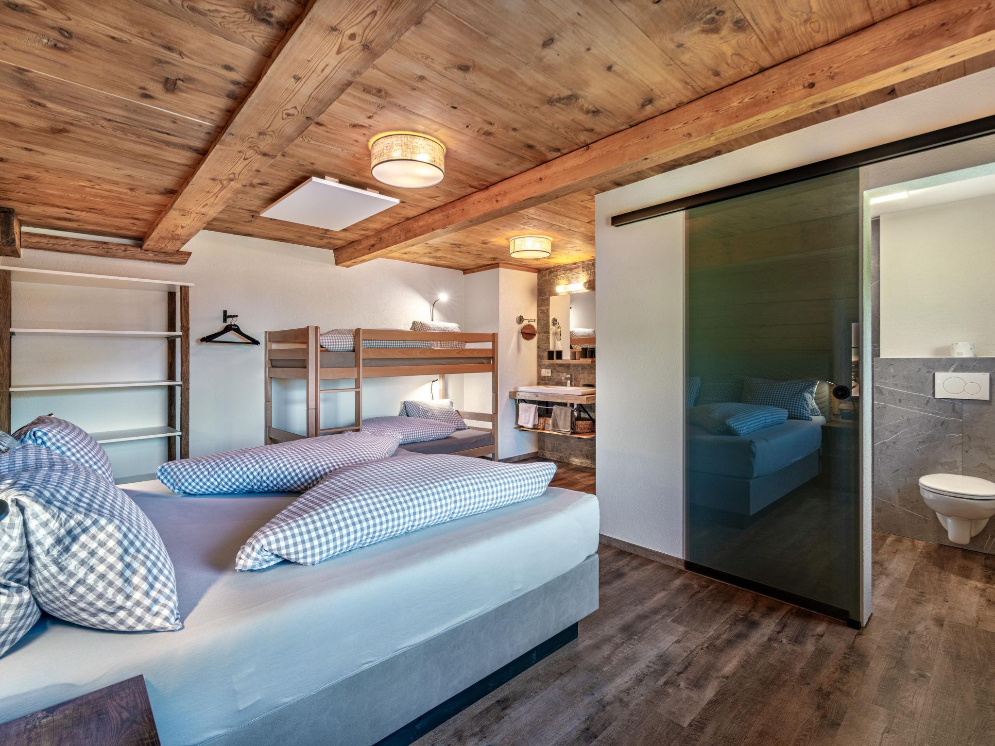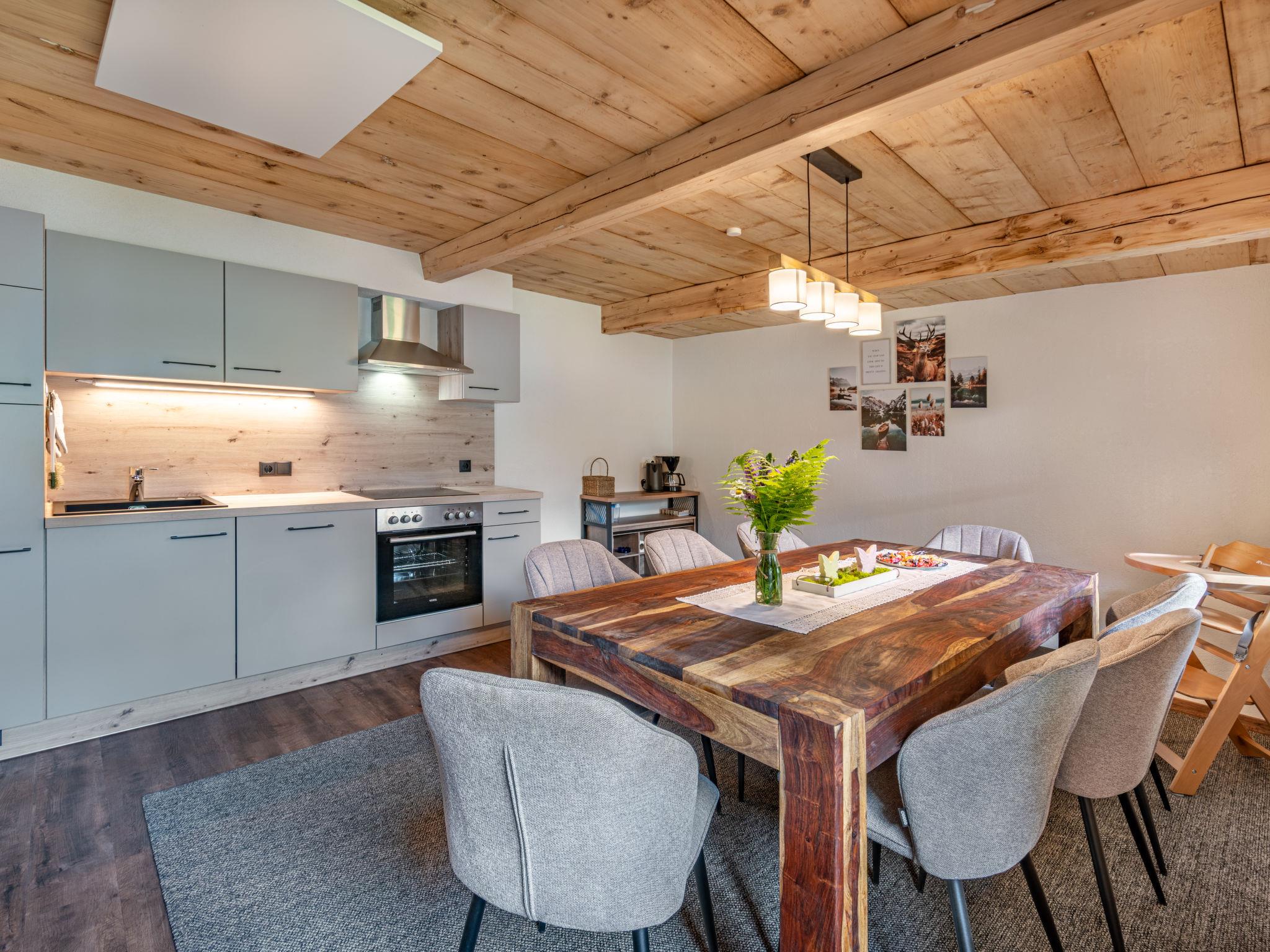 "Apart Heimat", 3-room apartment 90 m2, on the upper floor. Very tasteful and wooden furniture furnishings: 1 room with 1 x 2 bunk beds, 1 double bed, hand-basin and shower/WC. 1 room with 1 bed, 1 double bed, hand-basin and shower/WC. Large living/dining room with 1 sofabed, Scandinavian wood stove, dining table and satellite TV (flat screen). Large kitchen-/living room (oven, dishwasher, 4 ceramic glass hob hotplates, kettle, microwave, electric coffee machine) with dining table. Wood heating. Balcony. Sitting area. Marvellous panoramic view of the mountains and the valley. Facilities: Internet (WiFi, free).