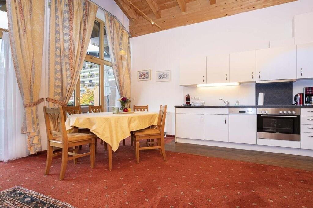 Den smukt indrettede ferielejlighed i Widderstein er i landlig stil. Der er fokus på detaljer og den store udsigt gennem gulv-til-loft-vinduer, som er betagende. Udover den hyggelige spisestue med panoramaudsigt finder I også et fuldt udstyret køkken og et komfortabelt siddeområde. Der er kaffemaskine, Nespresso-maskine, elkedel, æggekoger, rigeligt service, duge og køkkenlinned samt opvaskemiddel. Om sommeren er billet til svævebanen til alle 8 svævebaner inkluderet i overnatningsprisen.