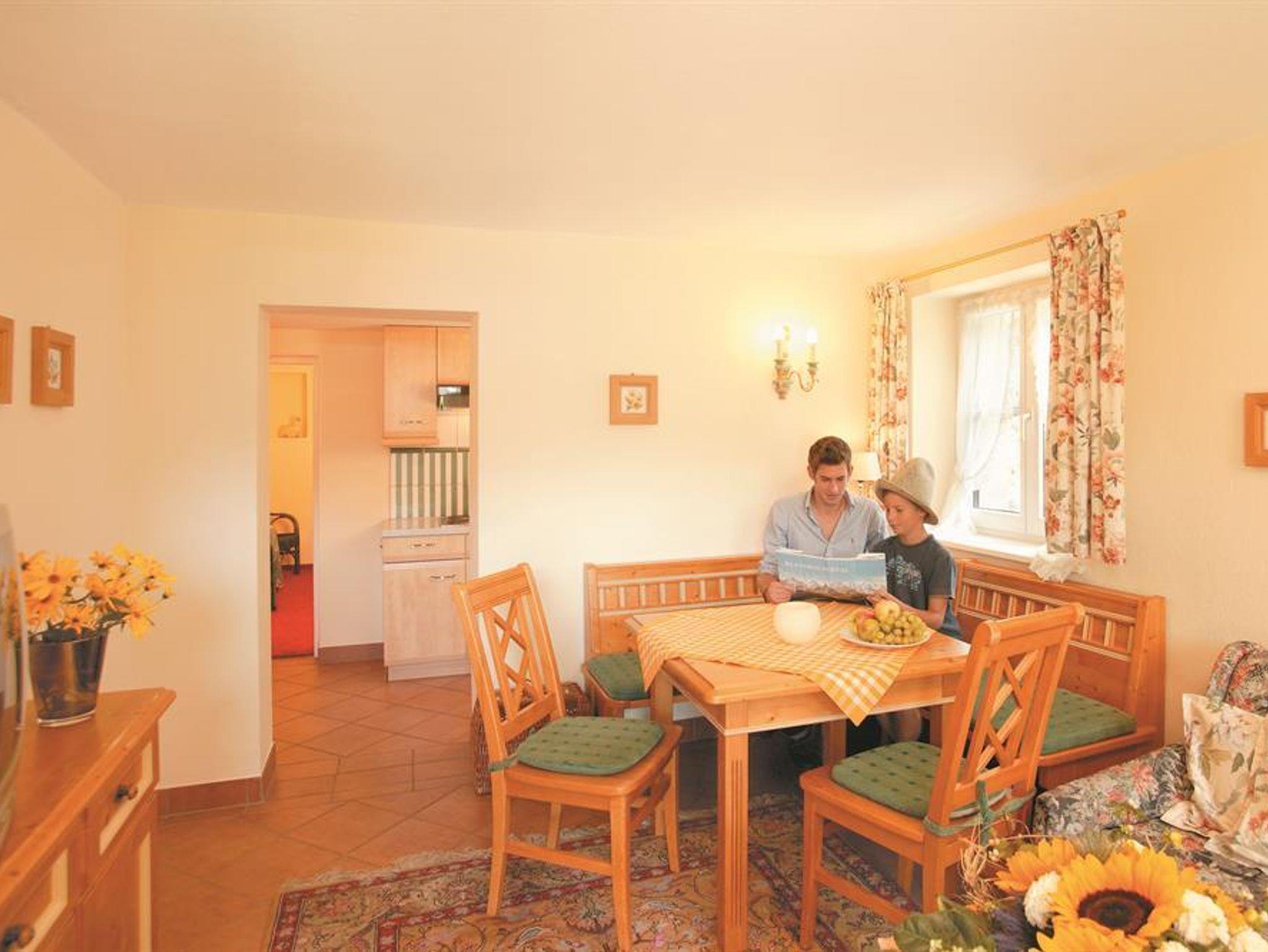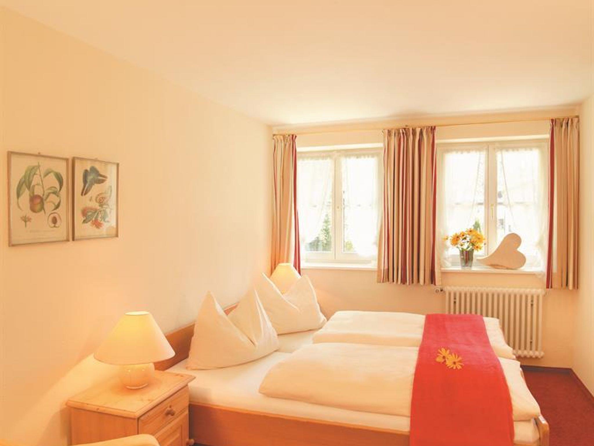 3-Raum-Ferienwohnungen im Landhausstil eingerichtet mit zwei Schlafzimmer, einem Wohnzimmer mit Küchenzeile, Bad, WC, Balkon, TV, Safe, Parkplatz. Auf Wunsch im Haupthaus Verwöhnhotel Walserhof Frühstück oder Halbpension buchbar. Einmalige Endreinigungsgebühr.