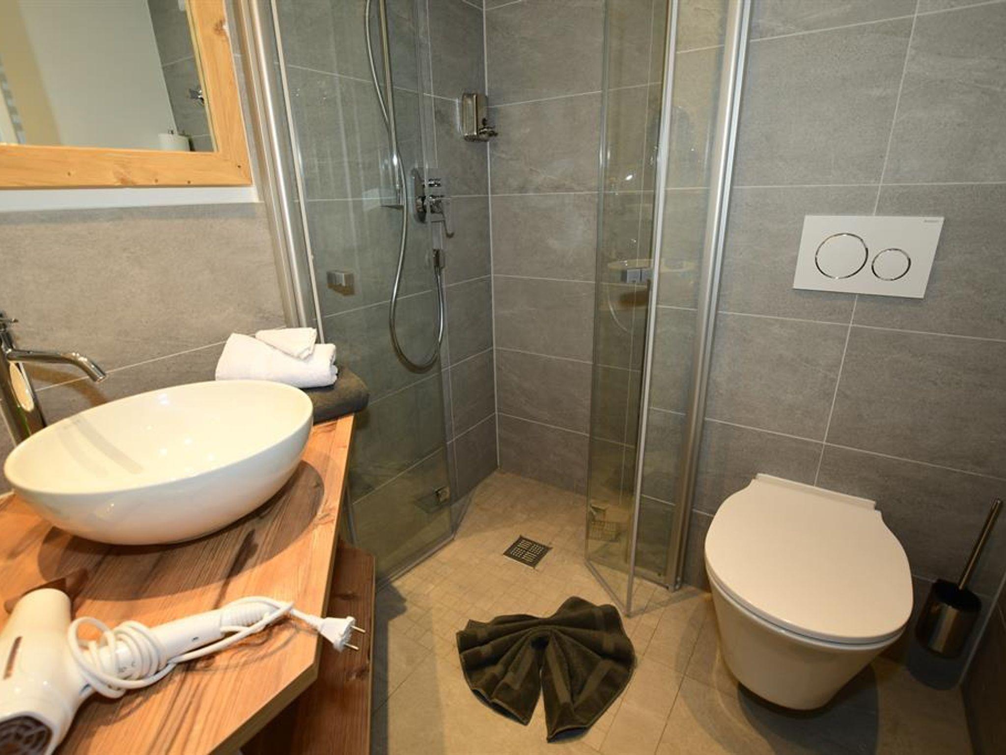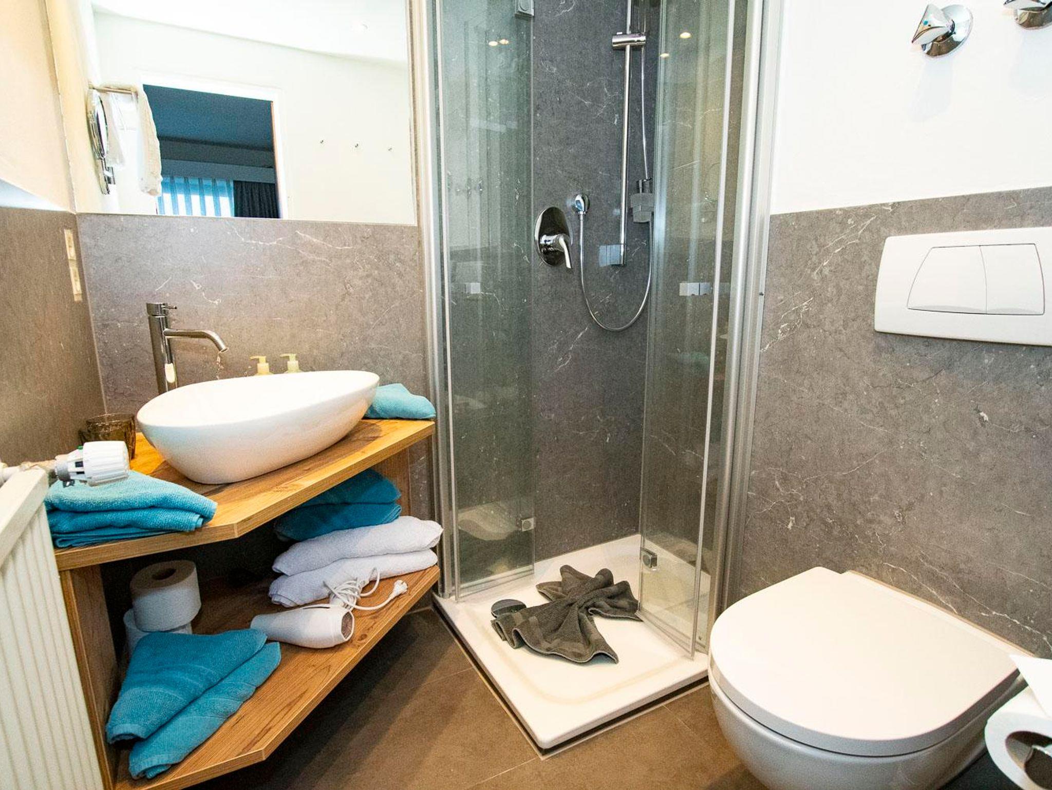 • Duschbad mit Fön, Kosmetikspiegel, und WC