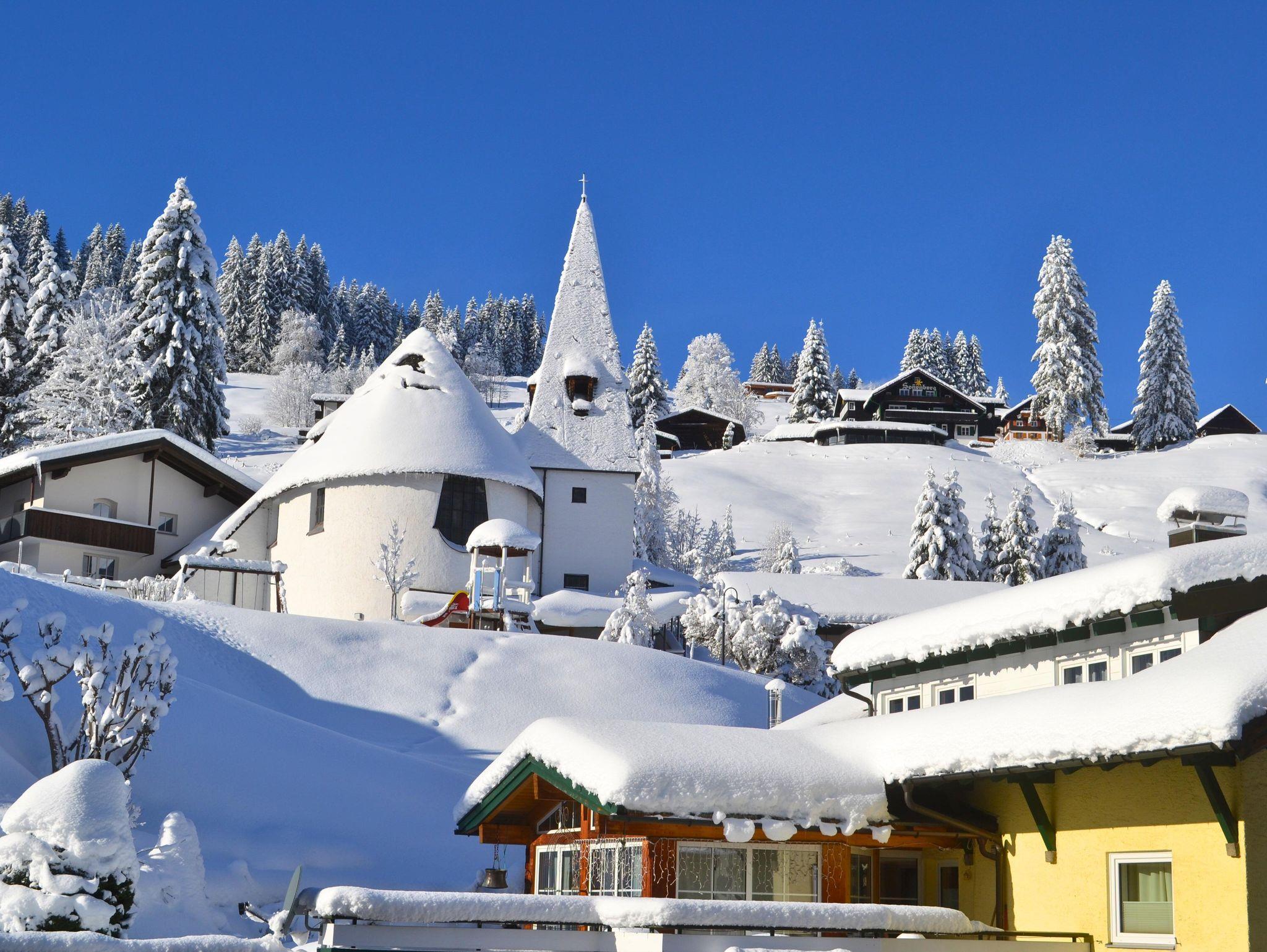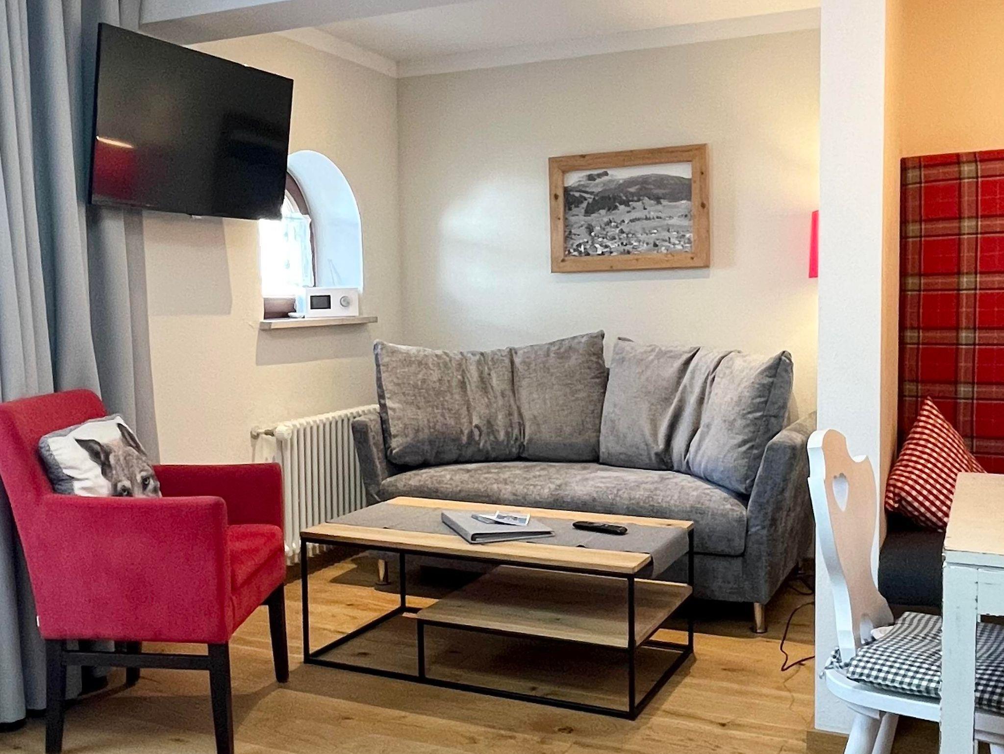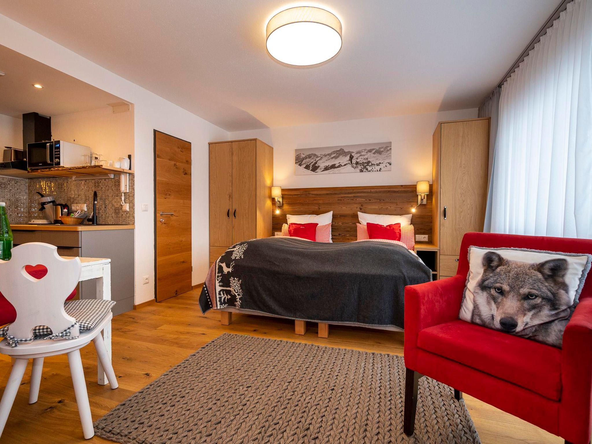 Erleben Sie Ferien im Herzen von Hirschegg. In unmittelbarer Nähe ist das Walserhaus, Bäckerei, Restaurants, Bushaltestelle und Bergbahn.