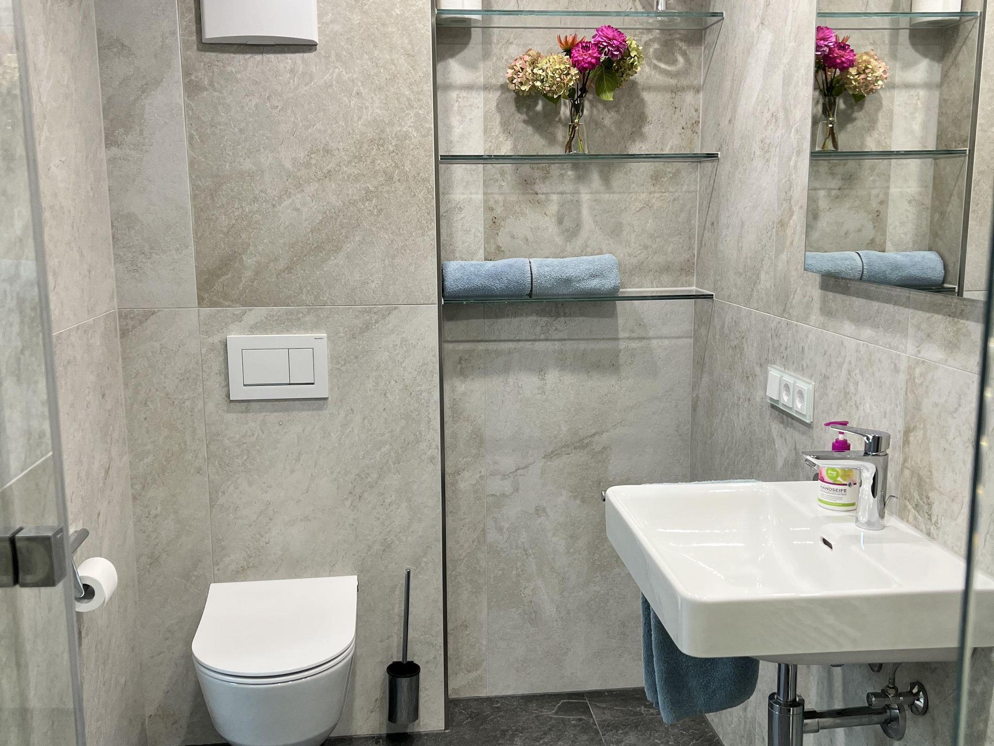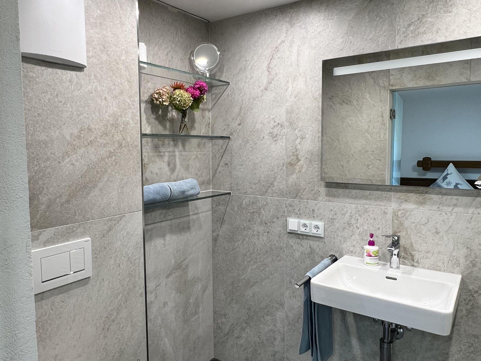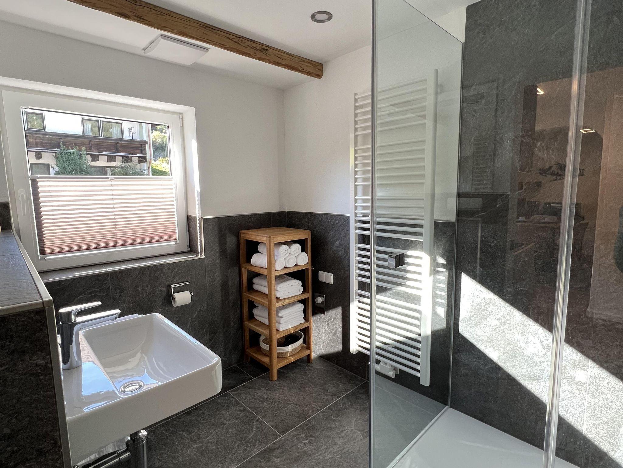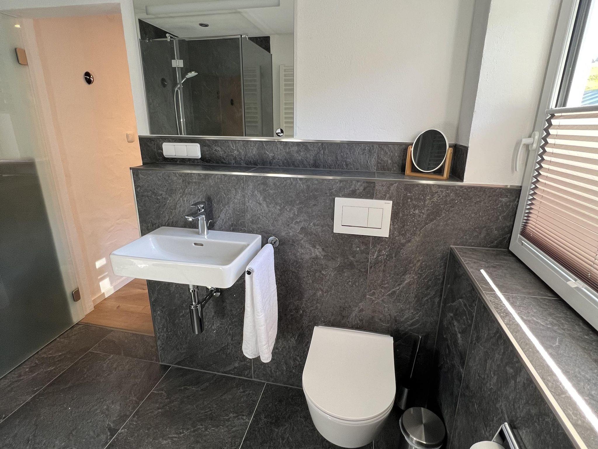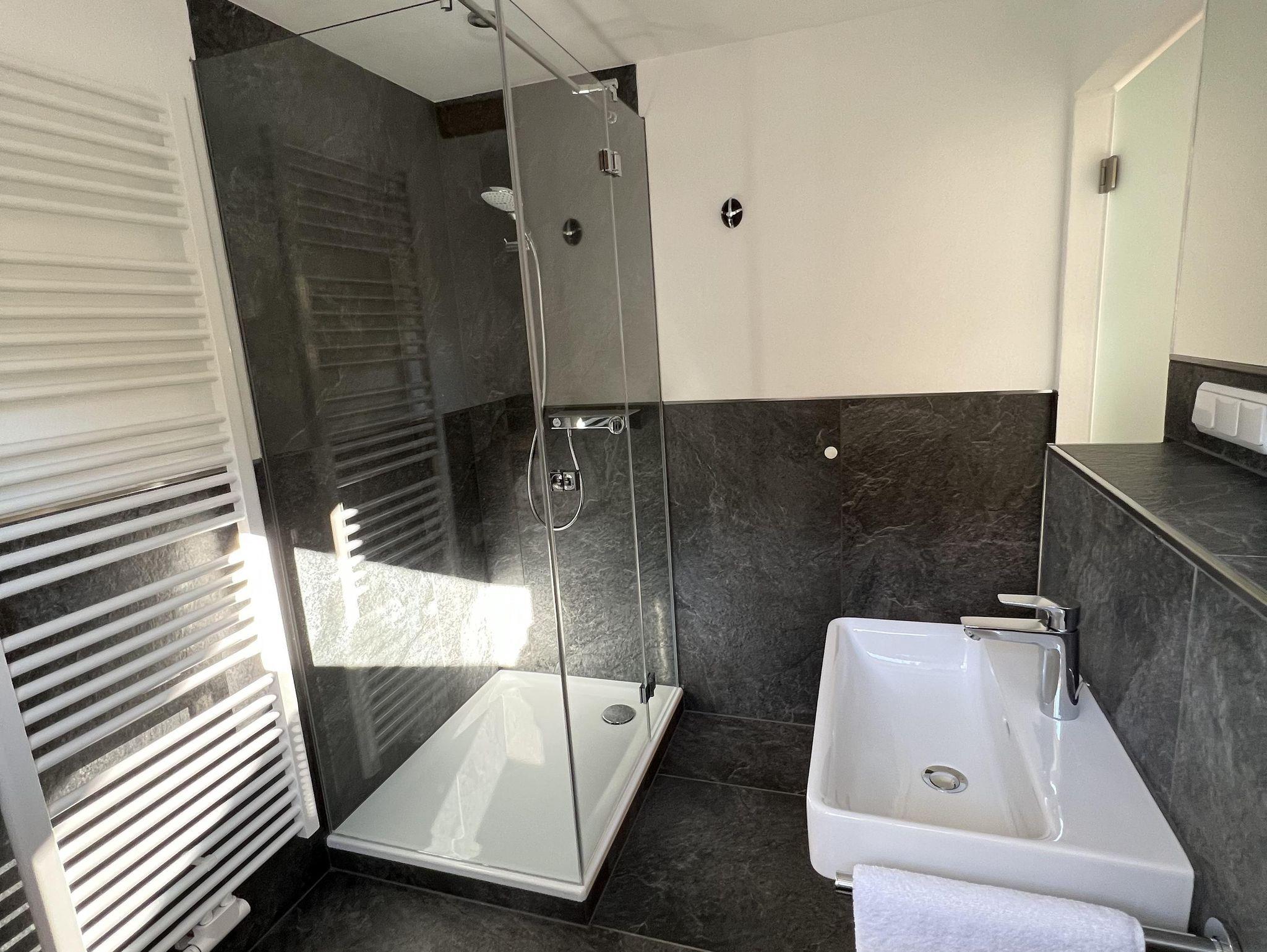 Schöne Ferienwohnung im Obergeschoss (renoviert 2022) mit Dusche/WC, Küchenzeile mit Kühlschrank/Gefrierfach, Geschirrspülmaschine, TASSIMO Kapsel-Maschine, Wasserkocher, Toaster und 2er Touch Control Cerankochfeld. Wohnbereich mit Massivholztisch, Fernseher mit A1-TV-Box und Schlafsofa. Abgetrennter Balkon am Schlafzimmer in Richtung Osten mit Klapptisch und zwei Stühlen. Eigene Terrasse im Garten mit Gartenmöbeln und tollem Ausblick in die Walser Berge.