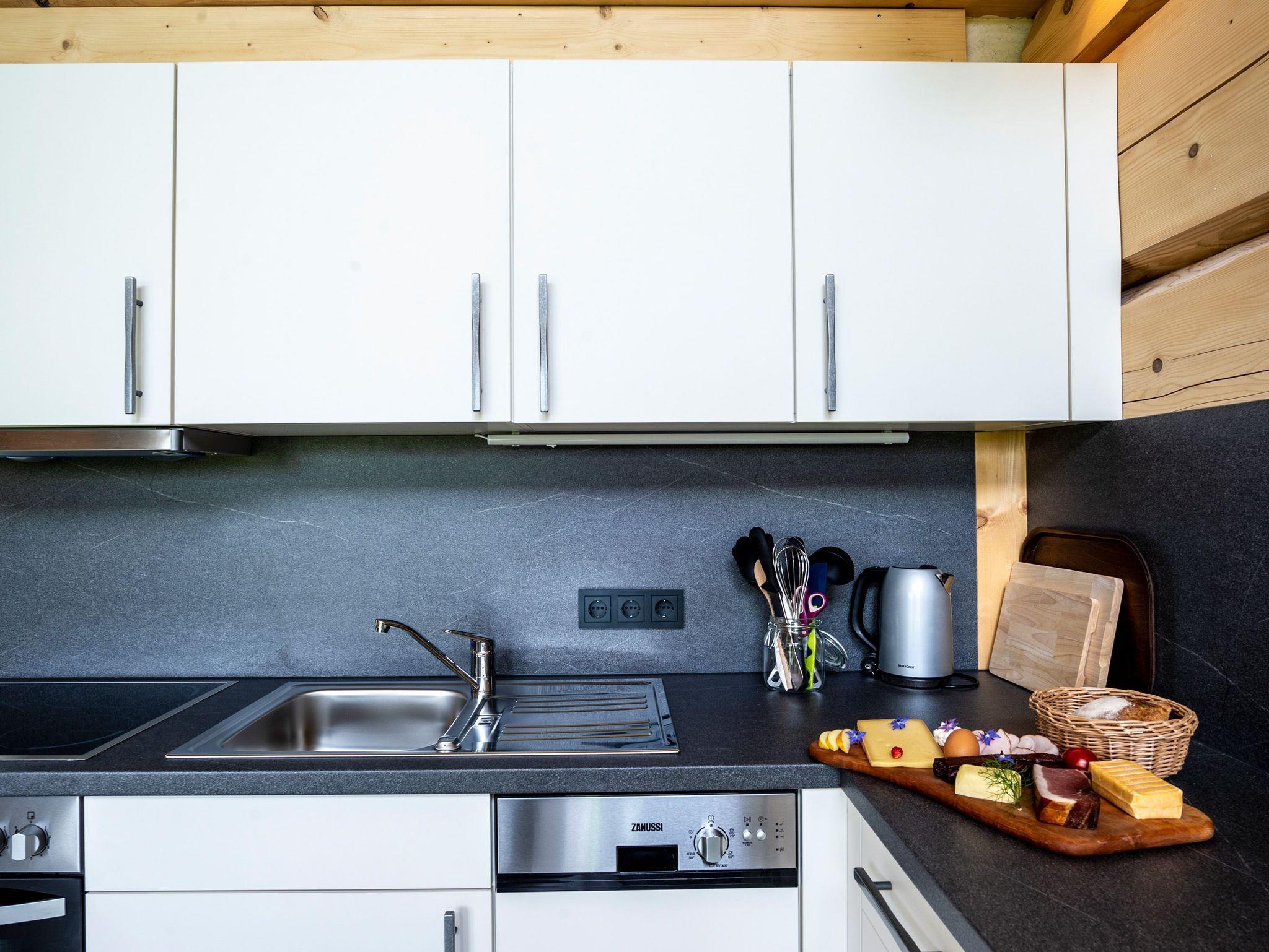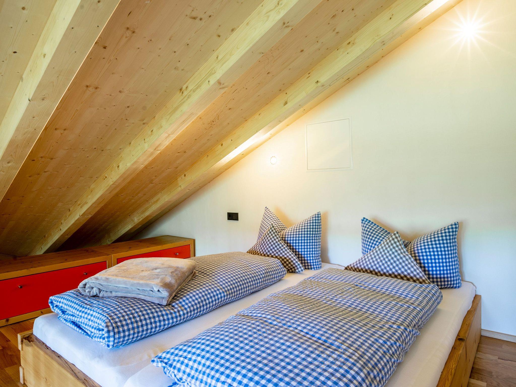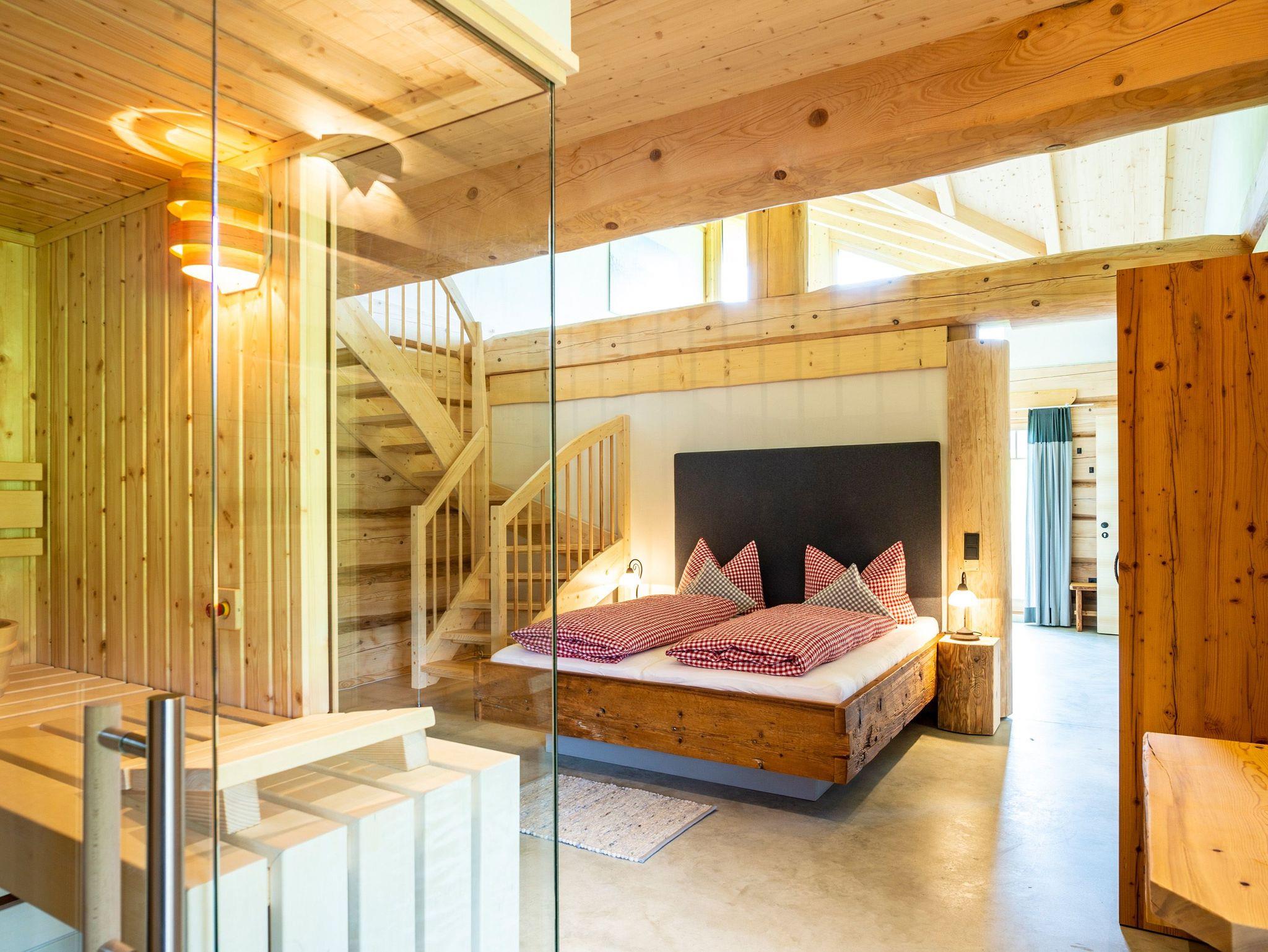 Ihr wohnt in einem reinen Holzhaus. Im Erdgeschoss in Massivholz-Bauweise und im Obergeschoss in traditioneller Blockhaus-Bauweise aus Weißtanne gebaut, herrscht im gesamten Gebäude eine besonders angenehme Wohnatmosphäre. Im Inneren des Hauses sind keine gesundheitsschädlichen Stoffe verarbeitet, sondern Lehm, Holz und Schafwolle schaffen ein gesundes Klima, das positiv auf das Wohlbefinden eines Menschen wirkt. Fast alle Gäste berichten über einen besonders erholsamen Schlaf.