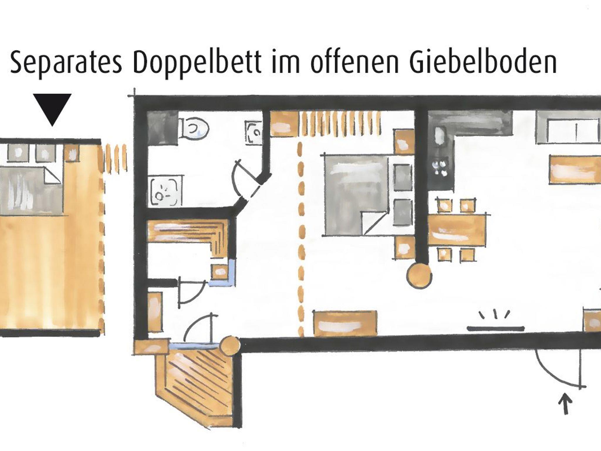 · 1 offene Schlafgalerie in der Giebeletage mit Doppelbett