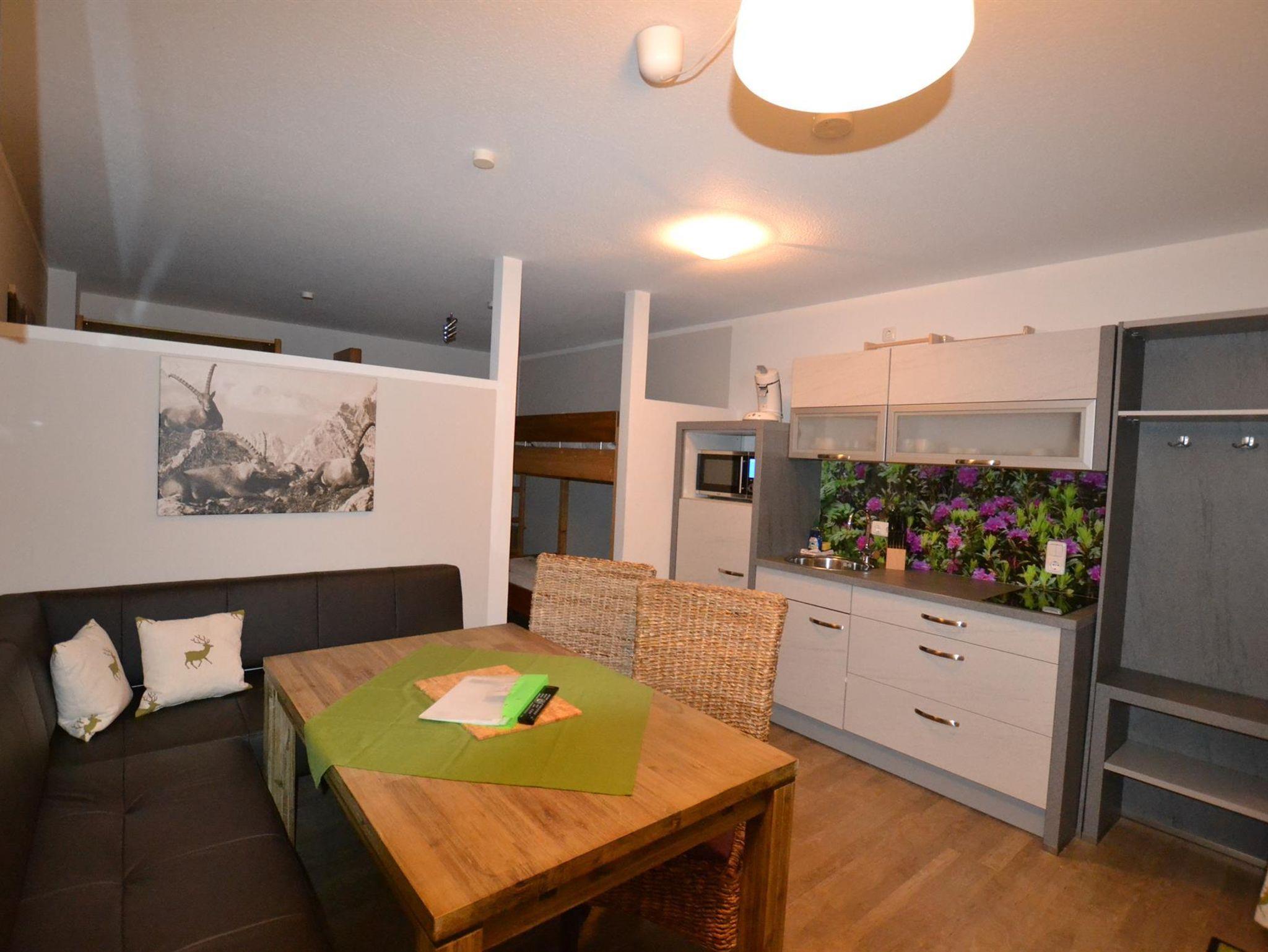 Gemütliches, kleines 1,5 Raum Appartement mit eigenem Eingang über die Terrasse. Im Wohn- Essbereich befindet sich eine Eckcouch mit Esstisch und eine voll ausgestattete Küchenzeile. 2-Platten Herd, Micro-Grill, Wasserkocher, Toaster und Kaffemaschine.