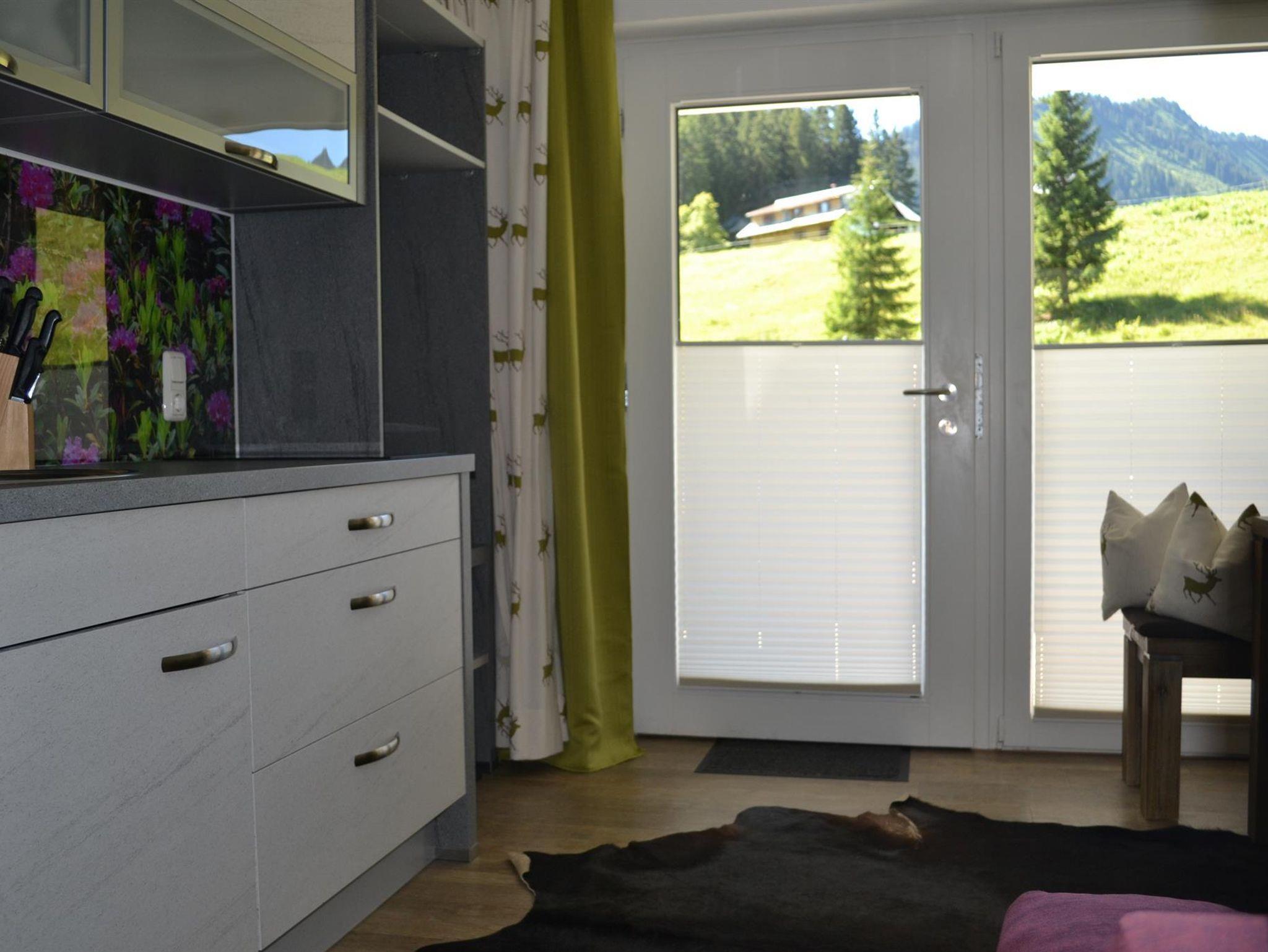Grosses Panoramafenster mit Südterrasse. Hund auf Anfrage mit Aufpreis möglich.
