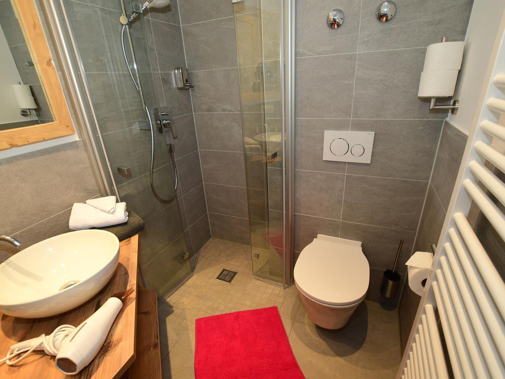 • Duschbad mit Fön, Kosmetikspiegel und WC