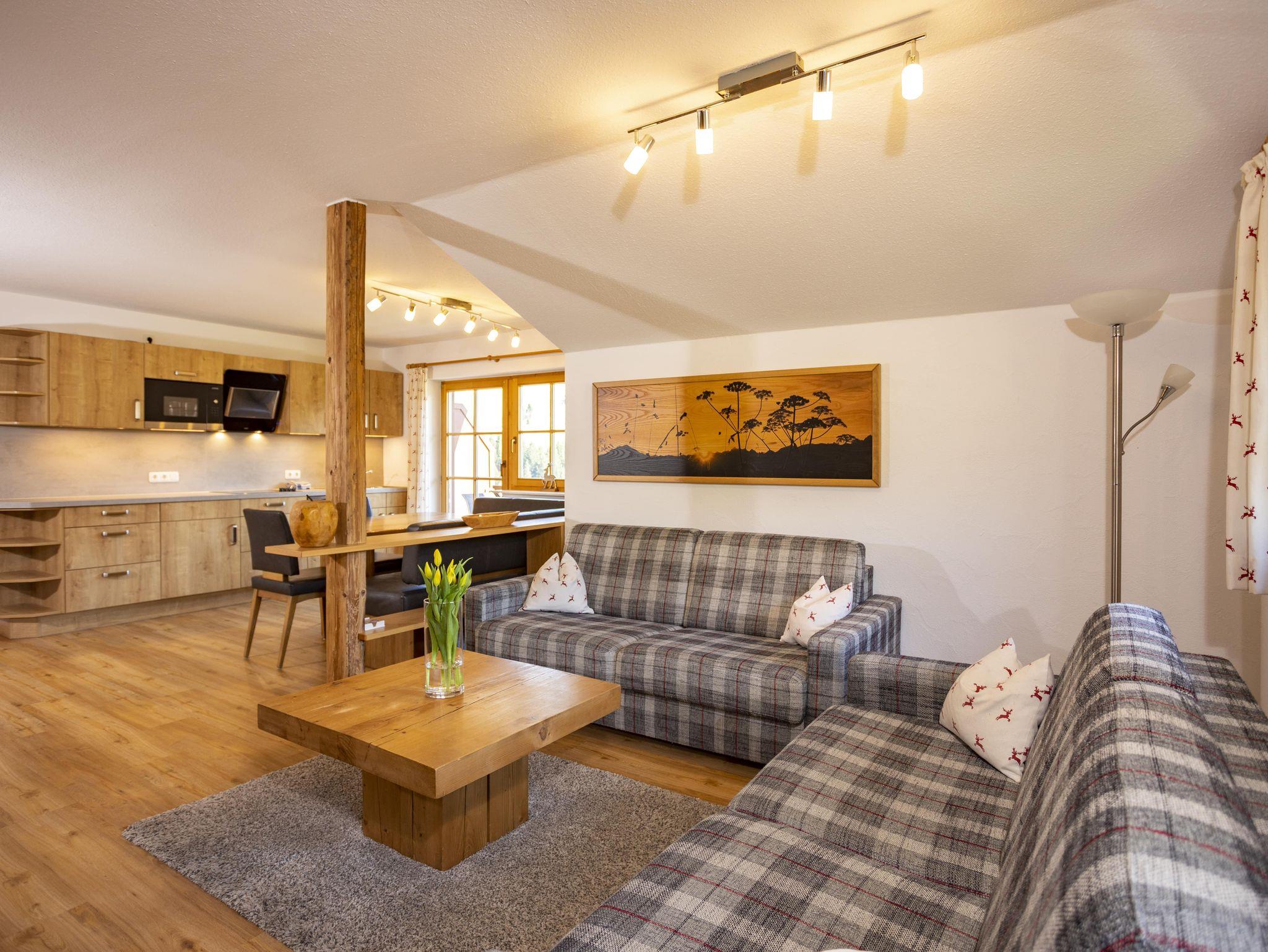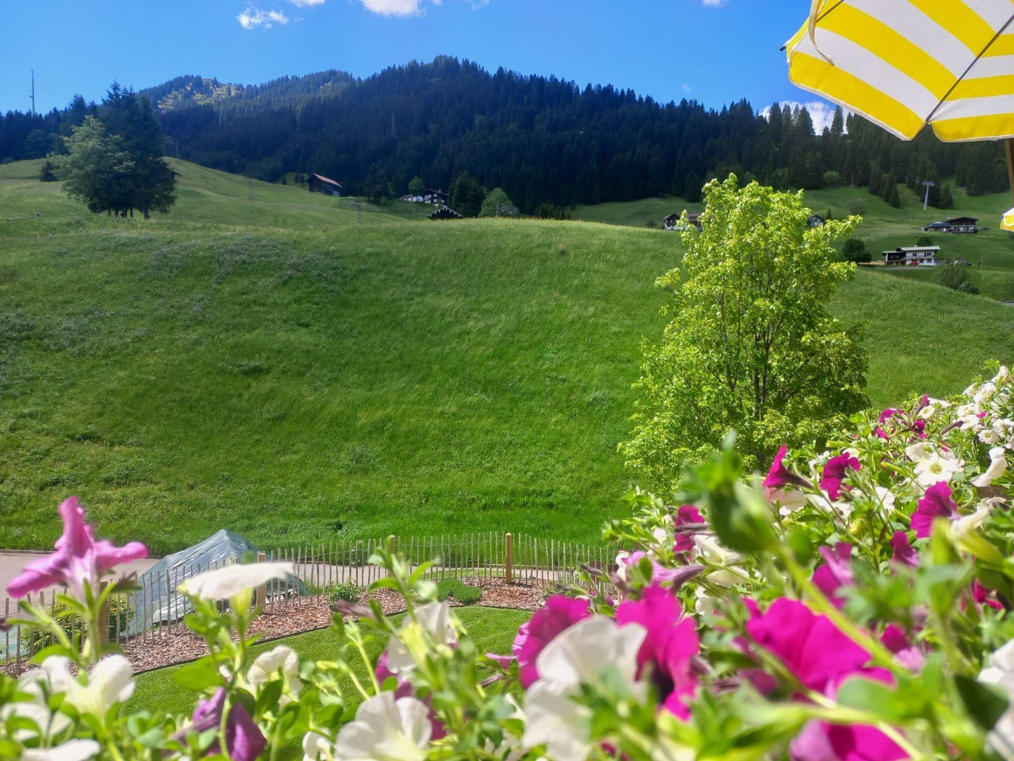 Wir bieten Ferienwohnungen, die Balkonen/Terrassen verfügen über einen Blick ins Wildental, auf Höfle oder die Heuberg-Arena. Im Sommer Bergbahnticket inkl.