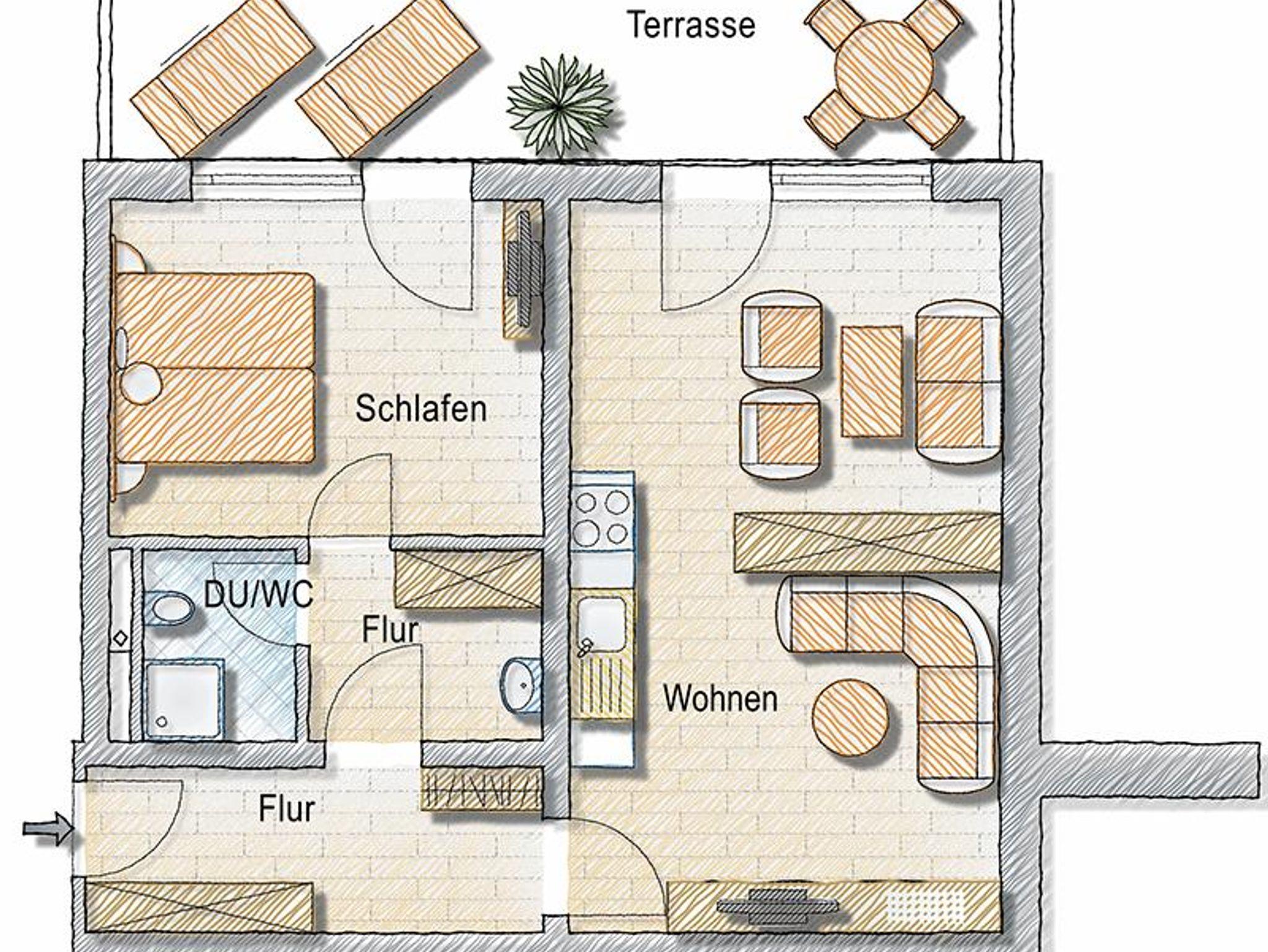 • Ruhige Terrasse zur Ost-Süd-Seite