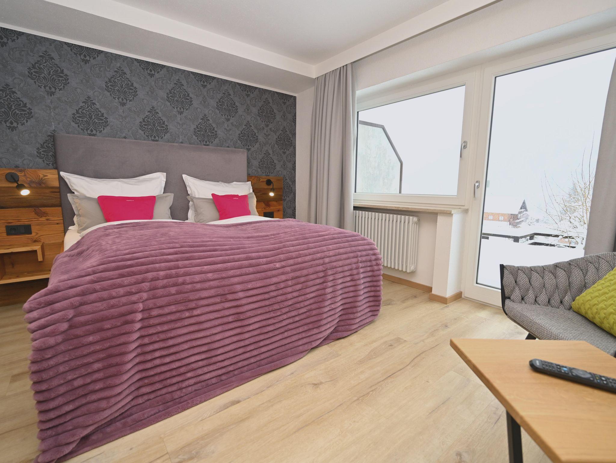 • Sep. Schlafzimmer mit Doppelbett, kleiner Sitzecke und Sat-TV